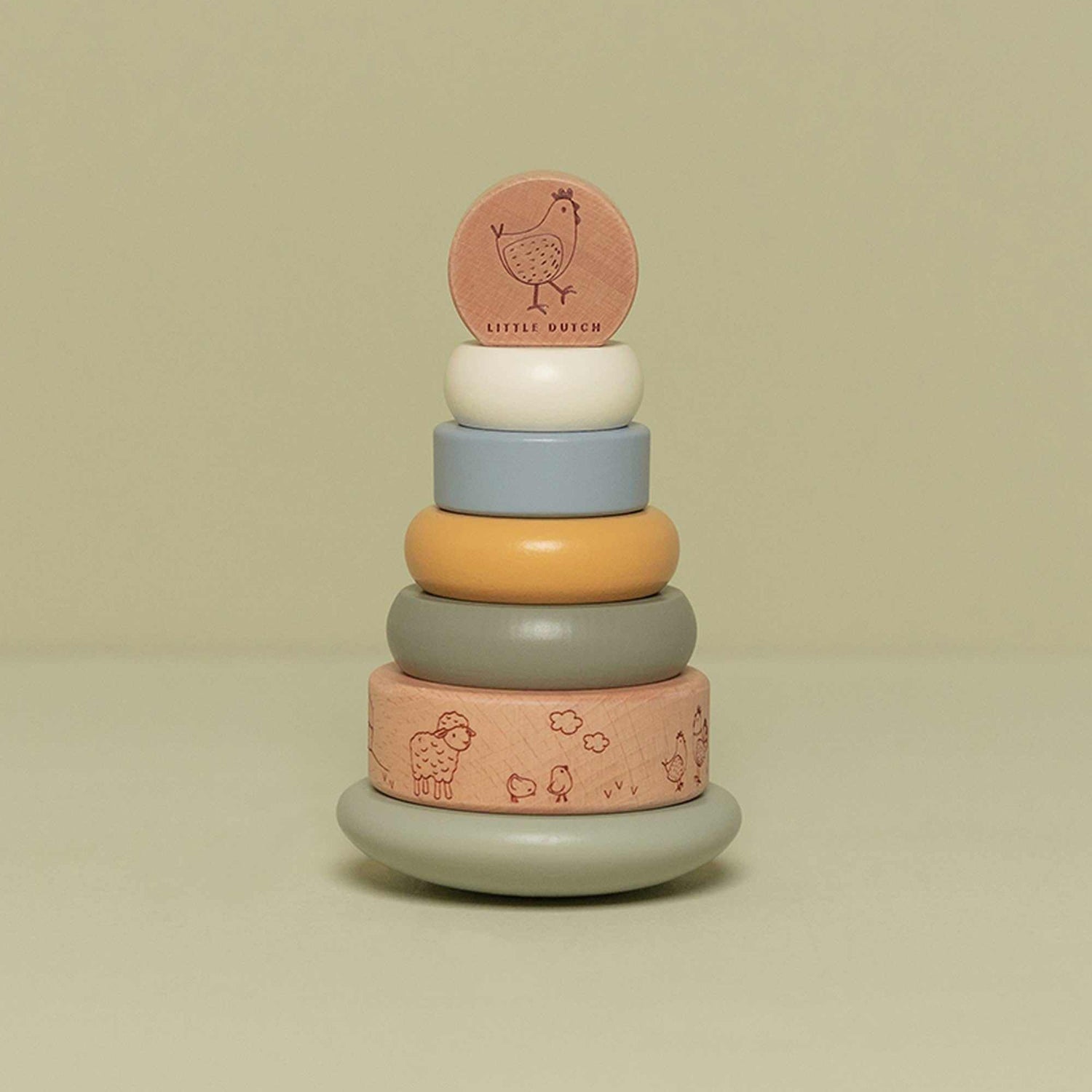 Der Little Dutch Holz-Stapelturm mit Ringen ist nicht nur ein einfaches Spielzeug, sondern eine aufregende Herausforderung für kleine Entdecker. Dieser spielerische Holzstapelturm aus der Little Farm Kollektion ist darauf ausgelegt, die Hand-Augen-Koordination durch Spaß und praktisches Spielen zu fördern. Der Stapelturm ermutigt die Kinder, die Holzringe in der richtigen Reihenfolge zu platzieren und sie auf die Pyramide zu stapeln. Aber Vorsicht! Es ist nicht so einfach, wie es sich anhört. Die Pyramide wackelt hin und her und stellt die Geschicklichkeit und Geduld der Kinder auf die Probe. Artikel:LD7142 Altersempfehlung: ab 12 Monate