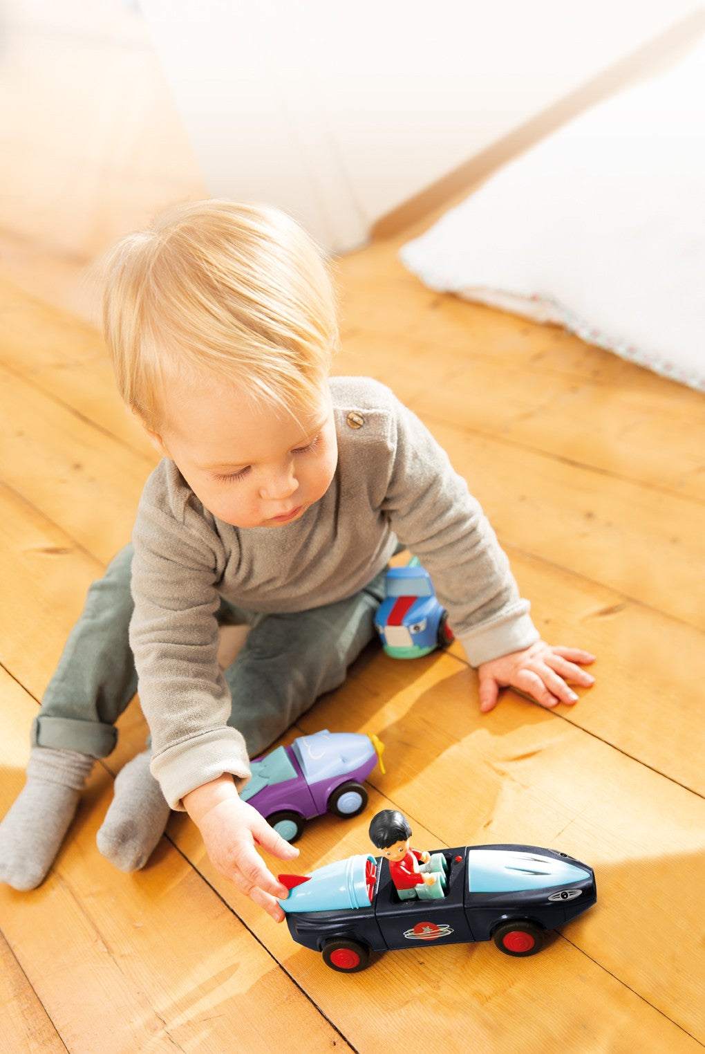 Ein hochwertiges und spannendes Spielzeug von Siku mit Schwungradmotor. Die Spielfigur ist beweglich und das Fahrzeug lässt sich in 3 Teile zerlegen und kann mit anderen Toddys- Fahrzeugen kombiniert werden. Durch das Dreh- Steck- System ist das kinderleicht. Das Fahrzeug hat Licht und Soundeffekte. Es fördert Feinmotorik und Geduld und bietet jede Menge Spielspaß.
