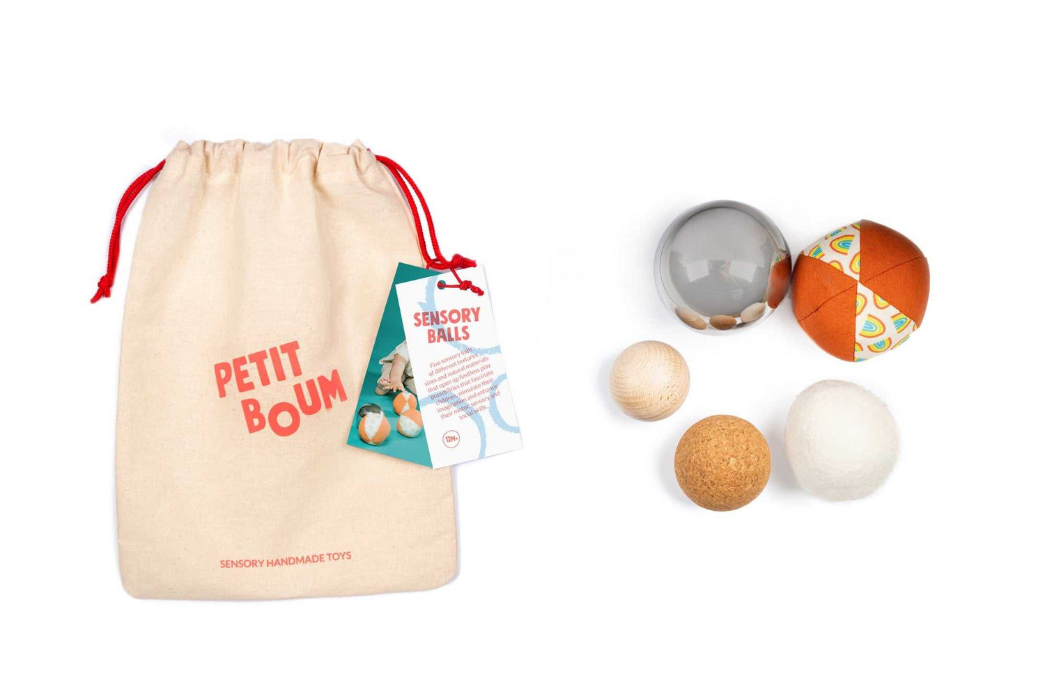 Die Sensory Balls von Petit Boum sind eine Auswahl von fünf Bällen, die speziell entwickelt wurden, um Kindern einzigartige Sinneserfahrungen zu bieten.