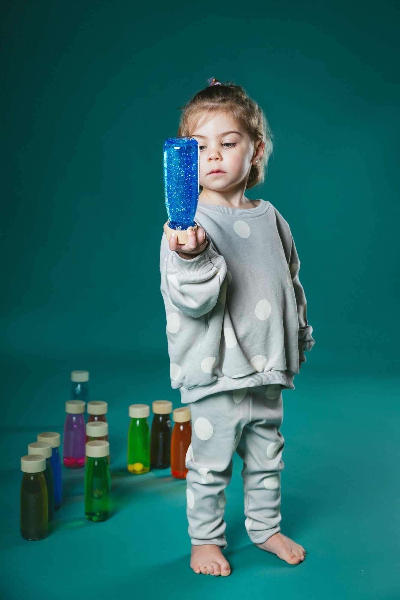 Die „Blue - Sensory Bottle“ von Petit Boum ist ein magisches und beruhigendes Erlebnis für Jung und Alt. Mit ihrer Regenbogenfarbe, Lichtspielen, Pompons, Glitzer und Sternen lädt sie dazu ein, in eine Welt der Entspannung und Fantasie einzutauchen. Diese Sensorische Flasche ist nicht nur ein visuelles Vergnügen, sondern kann auch bei starken Emotionen oder Stresssituationen helfen, wieder zur Ruhe zu kommen. Dank ihres doppelten Sicherheitsverschlusses ist sie sicher verschlossen und zerbricht nicht. Es wird jedoch empfohlen, die Flasche nicht in Wasser einzutauchen oder direkter Sonneneinstrahlung auszusetzen. Zur Reinigung genügt ein feuchtes Tuch. Die Flaschen von Petit Boum werden aus recycelbarem Kunststoff hergestellt und sind frei von Metallen, BPA und Phthalaten. Damit bieten sie nicht nur eine Welt voller Ruhe und Entspannung, sondern sind auch sicher für die Gesundheit. Sie sind bereits ab einem Alter von 3 Monaten geeignet und können sowohl von Kindern als auch Erwachsenen genutzt werden. Die Maße der „Blue - Sensory Bottle“ betragen 14 cm x 4 cm, was sie handlich und leicht zu transportieren macht. Egal ob zuhause, im Büro oder unterwegs, die Sensorische Flasche von Petit Boum ist immer zur Stelle, um Momente der Entspannung und Stille zu schenken. Tauchen Sie ein in die Welt der Sinne mit der „Blue - Sensory Bottle“ von Petit Boum und lassen Sie sich von ihrer Magie verzaubern. Gönnen Sie sich und Ihren Liebsten eine Auszeit vom stressigen Alltag und genießen Sie die beruhigende Wirkung dieser einzigartigen Flasche.