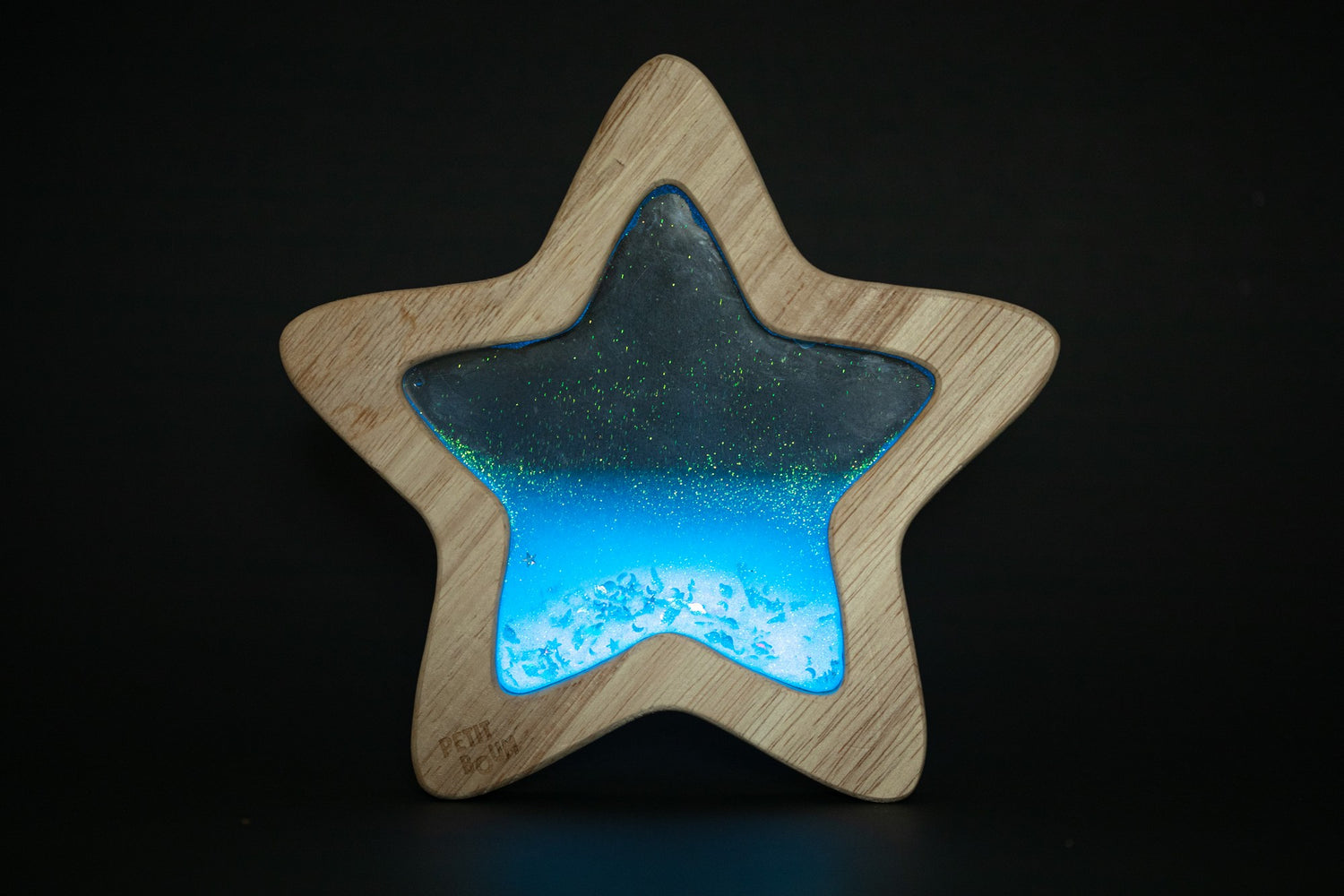 Die fluoreszierenden Flüssigkeiten im Inneren des Sterns leuchten im Dunkeln und schaffen eine magische Atmosphäre im Kinderzimmer.