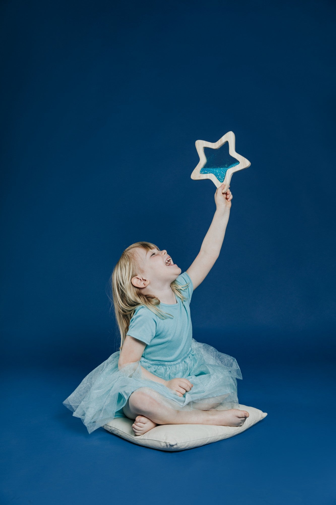 Die bunten Farben und glitzernden Partikel sorgen für visuelle Stimulation und regen die Neugier der Kinder an, während sie mit dem Stern interagieren.