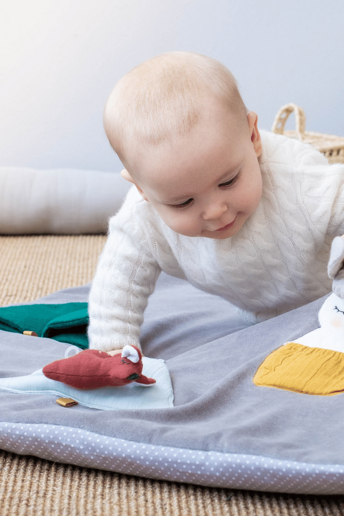 Die Spieledecke ist weich gepolstert und somit ein besonders warmer und gemütlicher Ort für die Kleinen.