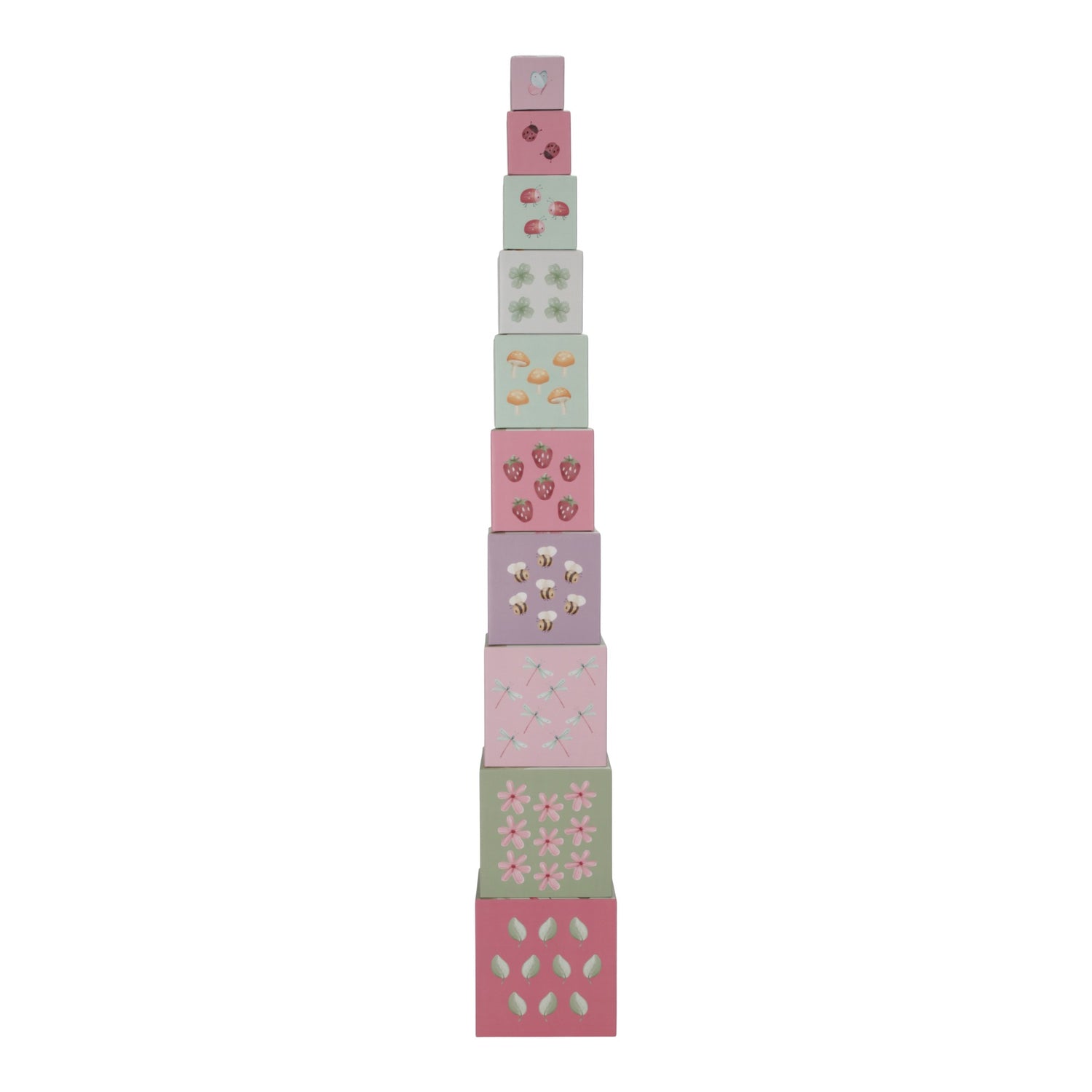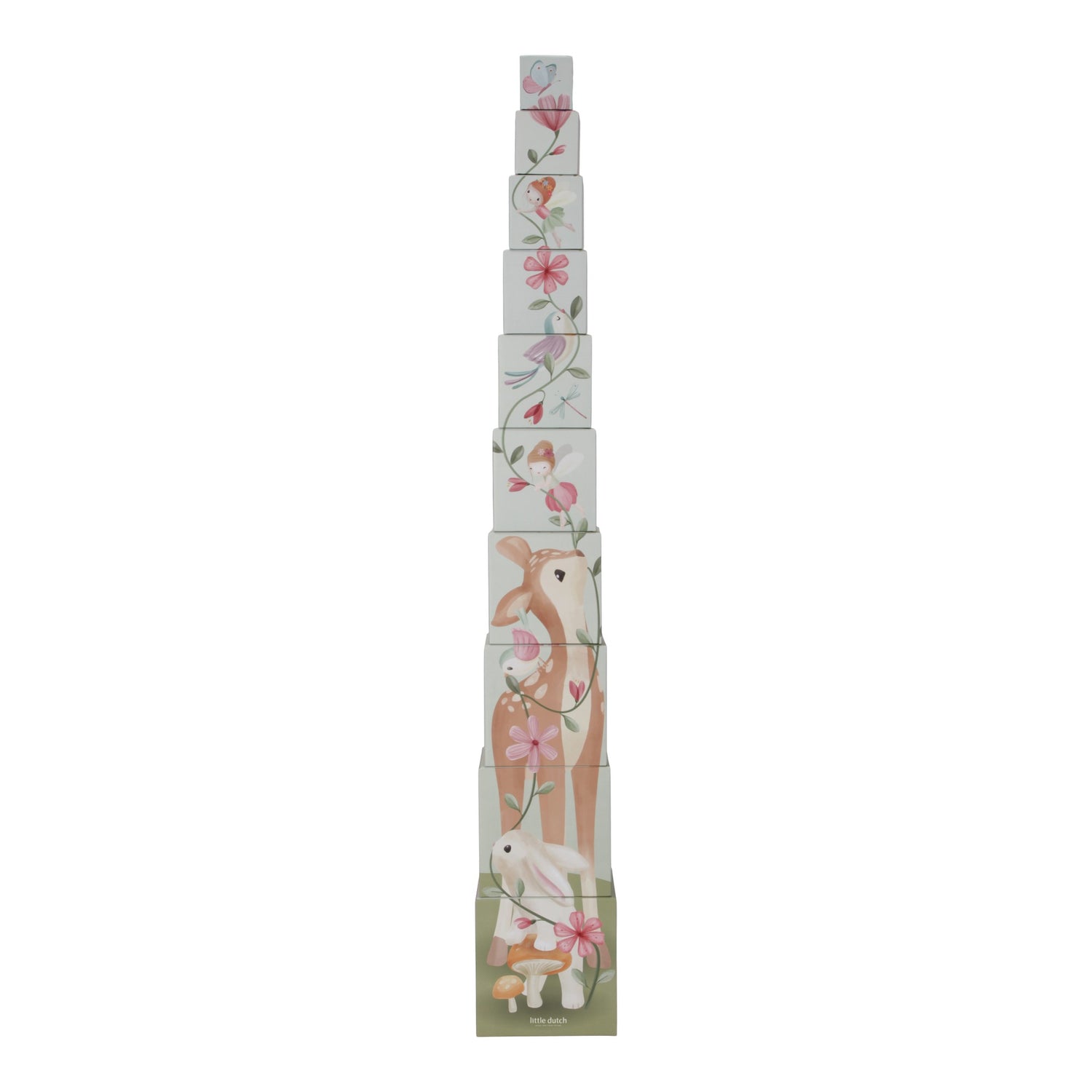 Staple einen Block auf den anderen und sieh, wie die Magie von Fairy Garden wächst! Man kann die Blöcke stapeln, um einen hohen Turm zu bauen, oder sie waagerecht auf den Boden legen. Entdecke darin vier verzauberte Szenen. Baue einen Blumenzweig, der von den hübschesten Waldtieren gehalten wird. Ordnen Sie sie auf zwei verschiedene Arten nach Zahlen oder sammeln Sie die einzelnen Bilder der Gartenelemente. Mit diesen Bausteinen lernen Kinder spielerisch das Zählen bis 10. Jeder Baustein zeigt entzückende Illustrationen aus der Fairy Garden-Kollektion, darunter Rehe, Hasen, Igel, Feen, Marienkäfer und fröhliche Blumen. Die kleineren Blöcke können in die größeren gesteckt werden, so dass sie leicht aufgeräumt werden können. Die Stapelblöcke von Little Dutch bestehen aus stabilem Karton und sind daher sehr haltbar. Der kleinste Block ist ca. 5 cm, der Größte ca. 14 cm groß. Artikel: LD7339 Material: Papier/Karton Maße: 14 x 14 x 95 cm Altersempfehlung: 18 Monate