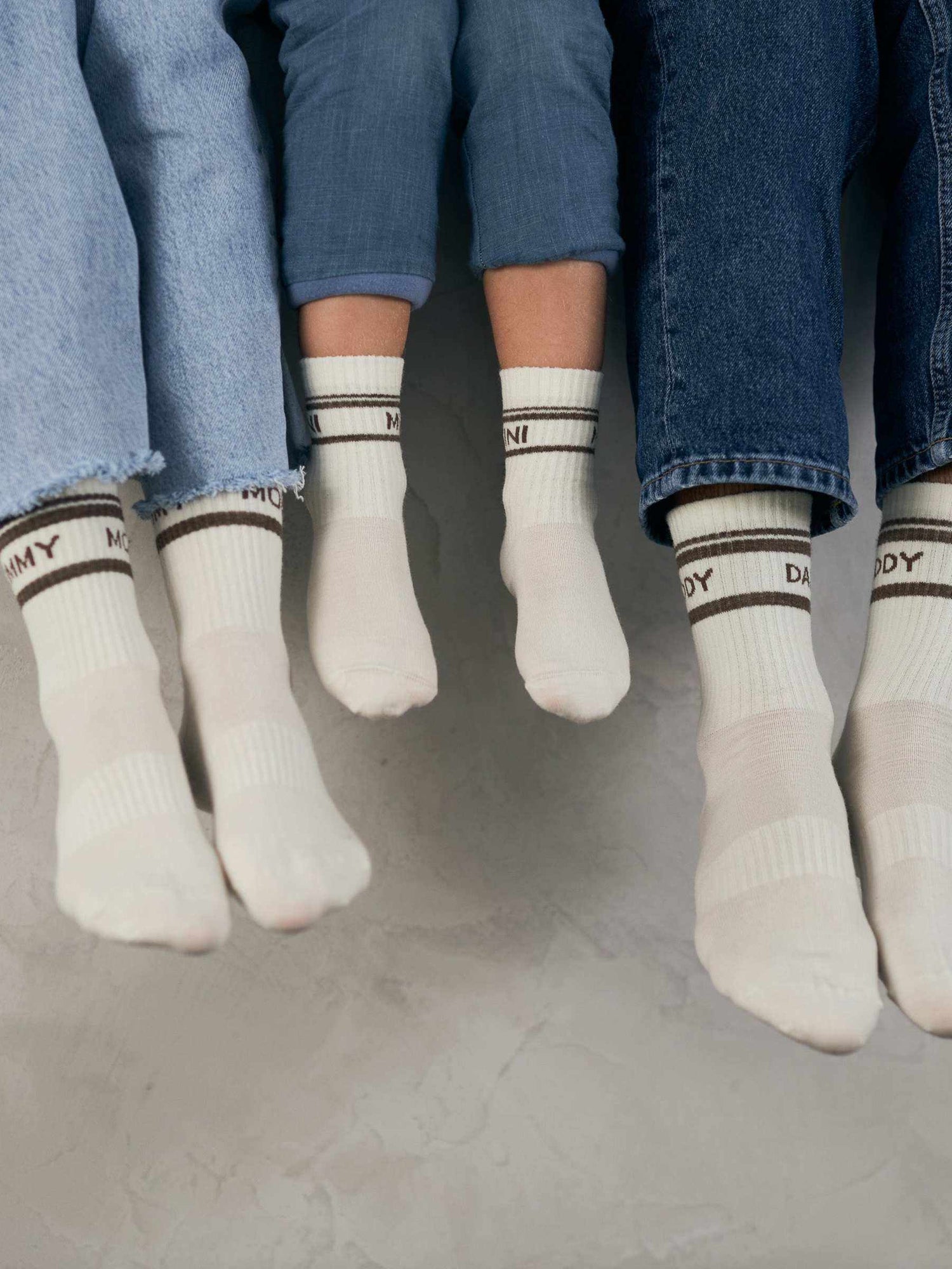 Die Famvibes „Mini" Wollsocken sind das perfekte Piece für alle, die den Mini Me Look lieben. Eine super schöne Geschenkidee. Für den richtigen Family Vibe gibt es die Socken für Mommy, Daddy und Mini im Partnerlook.