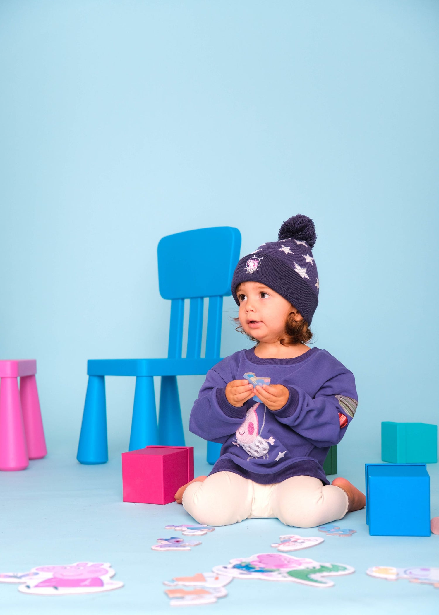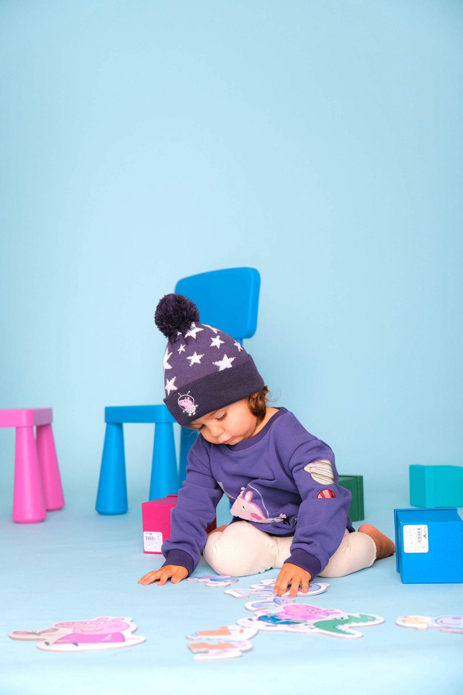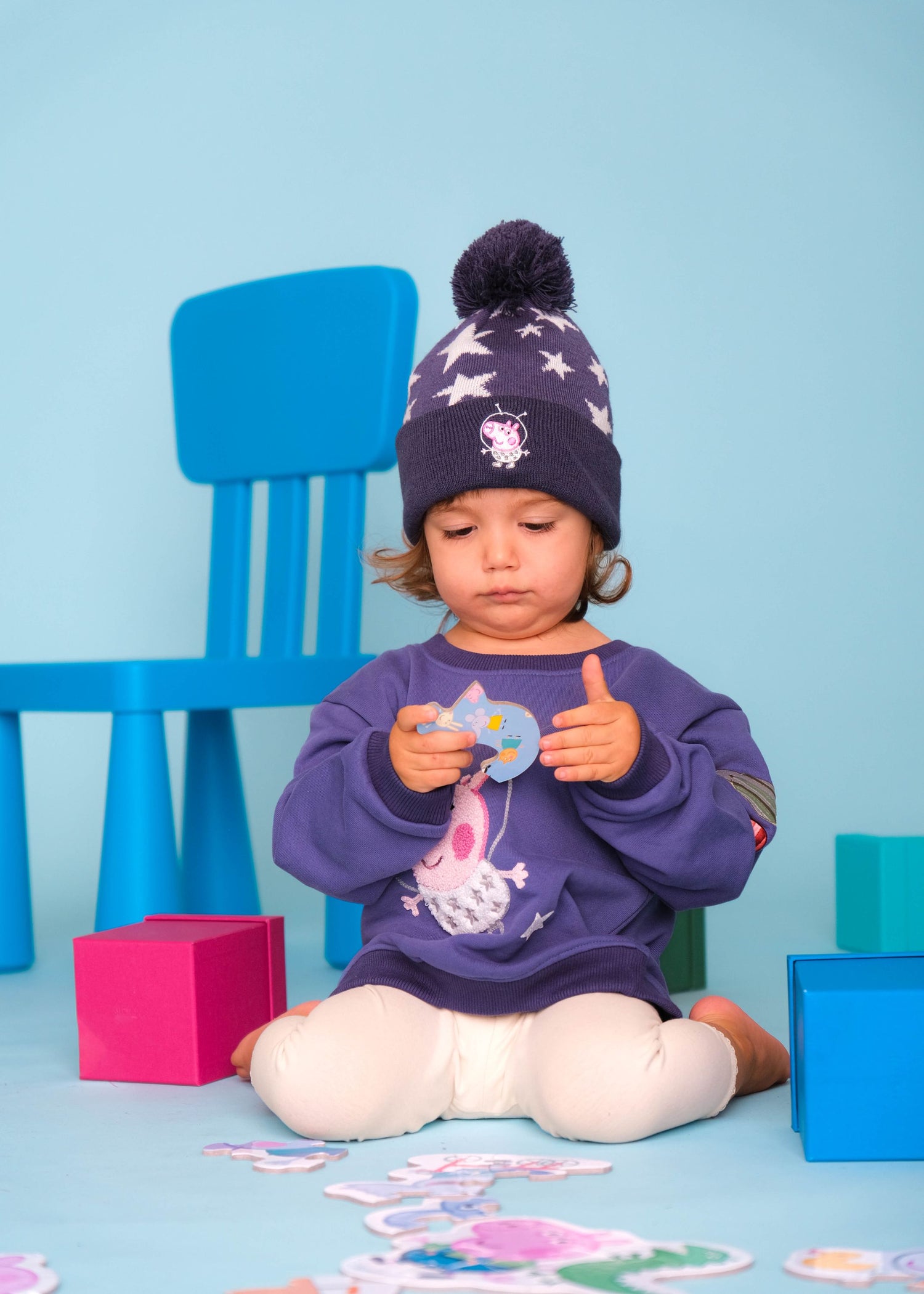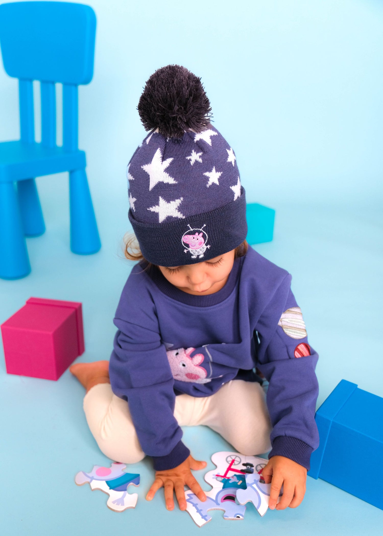 Das süße Design zeigt Peppas kleinen Bruder George in einem Astronautenanzug, umgeben von Sternen, was sofort die Fantasie anregt.