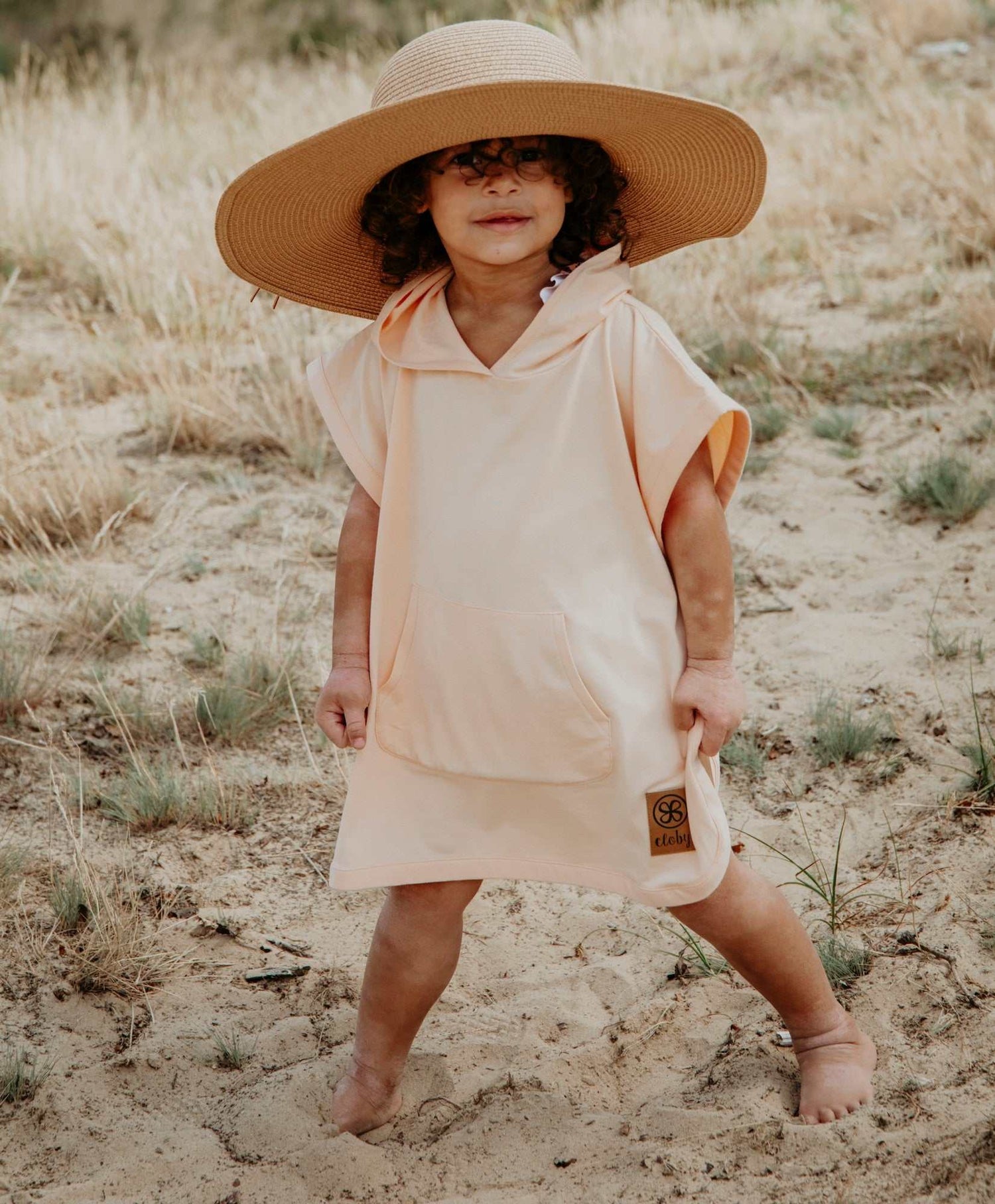 Mit den neuen UV Ponchos von Cloby sind Eure Kleinen perfekt in der Sonne geschützt. Durch die Web-Art hat der Poncho einen UV Schutz von 50+ , was bedeutet, dass sie über 98 % der schädlichen UV-Strahlen blockieren. Das supersofte Biobaumwoll- Bambus Gemisch mit Elasthan, ohne chemische Zusatzstoffe hat nicht nur einen UPF 50+, sondern ist auch antibakteriell, atmungsaktiv und hochresorbierend. Der Poncho ist mit seiner Kapuze und einer Tasche vorne megapraktisch und mit den 2 Druckknöpfen unter dem Arm bleibt er auch an Ort und Stelle. Ob am Strand, am See, im Garten oder am Pool, Eure Kleinen sind stets geschützt, sehen zuckersüß aus und können unbeschwert und bequem spielen. Artikel: CBY-UVP2-PS Größe: 98 Altersempfehlung: 3-5 Jahre Mix aus OCS-zertifizierter Bio-Baumwolle und Bambus UPF 50+ Sonnenschutz ohne Zusatz von Chemikalien (EN13758-1 zertifiziert) Pflege: Waschen bei 40 ° C; bügeln bei niedriger Temperatur; nicht chemisch reinigen; nicht bleichen; normal trocknen
