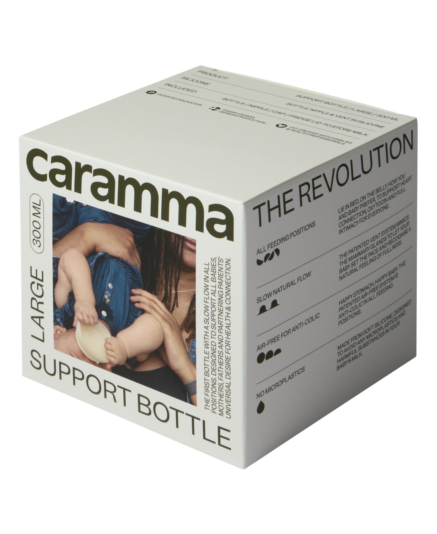 Die Caramma Support Flasche ist eine in Dänemark entwickelte Babyflasche, die das natürliche stillen nachahmt. Das patentierte Belüftungssystem ermöglicht es Babys, den Milchfluss zu kontrollieren und ein natürliches Sättigungsgefühl zu entwickeln.