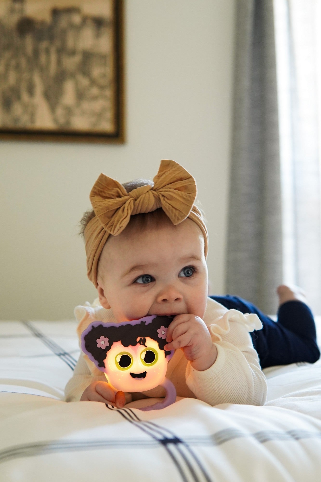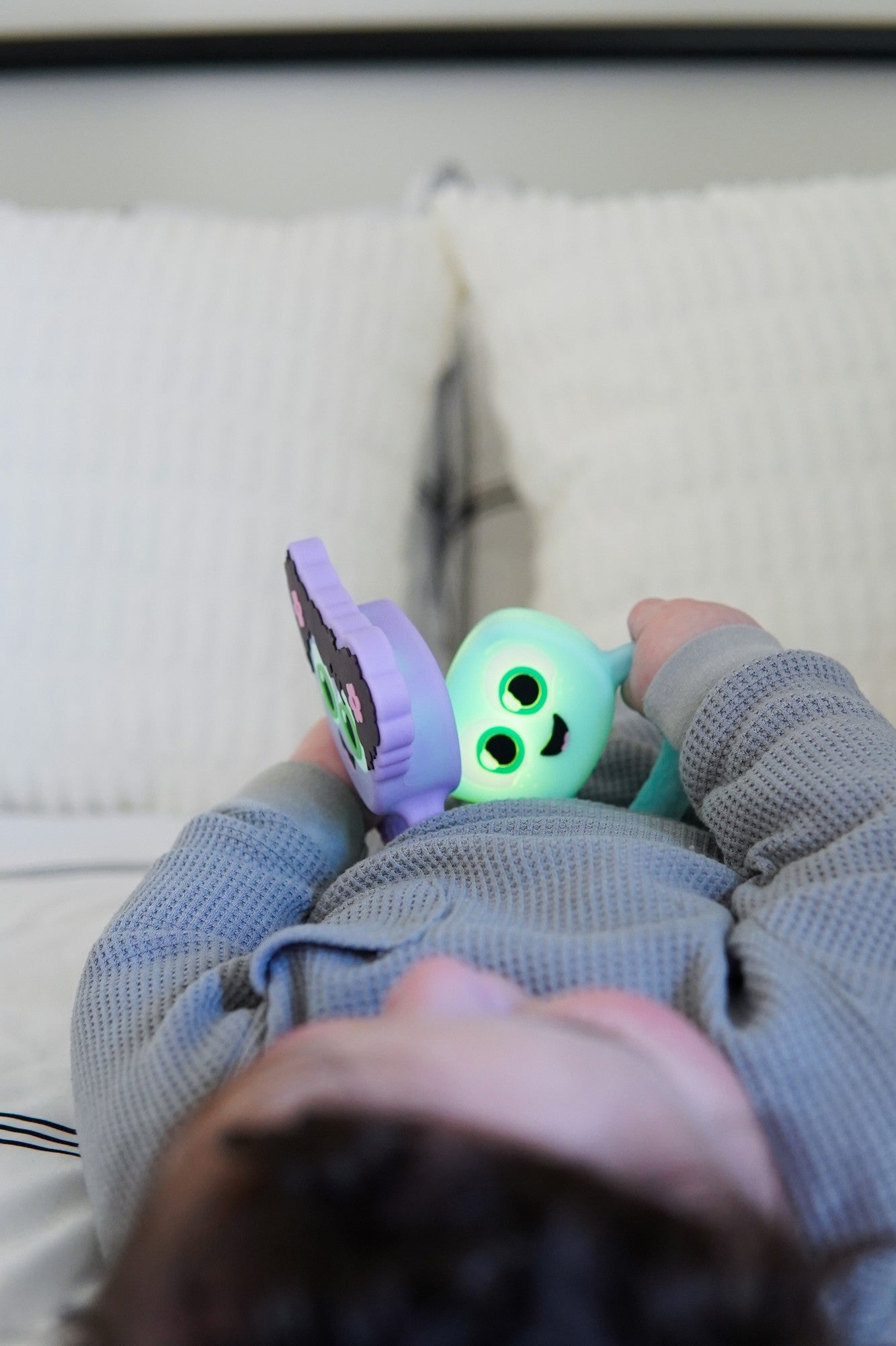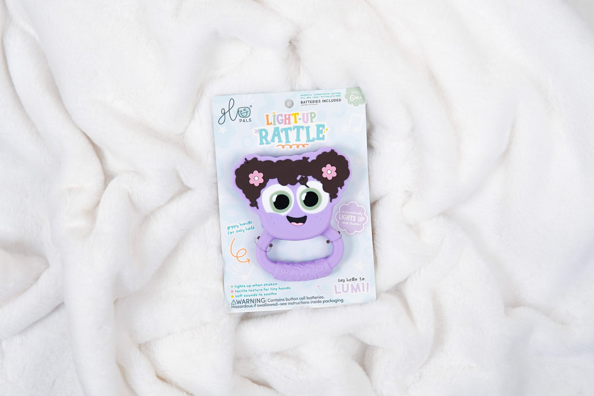 Die leuchtende Rassel von Glo Pals ist ein innovatives Spielzeug, das speziell für die sensorische Stimulation und die motorische Entwicklung von Babys ab 6 Monaten entwickelt wurde.