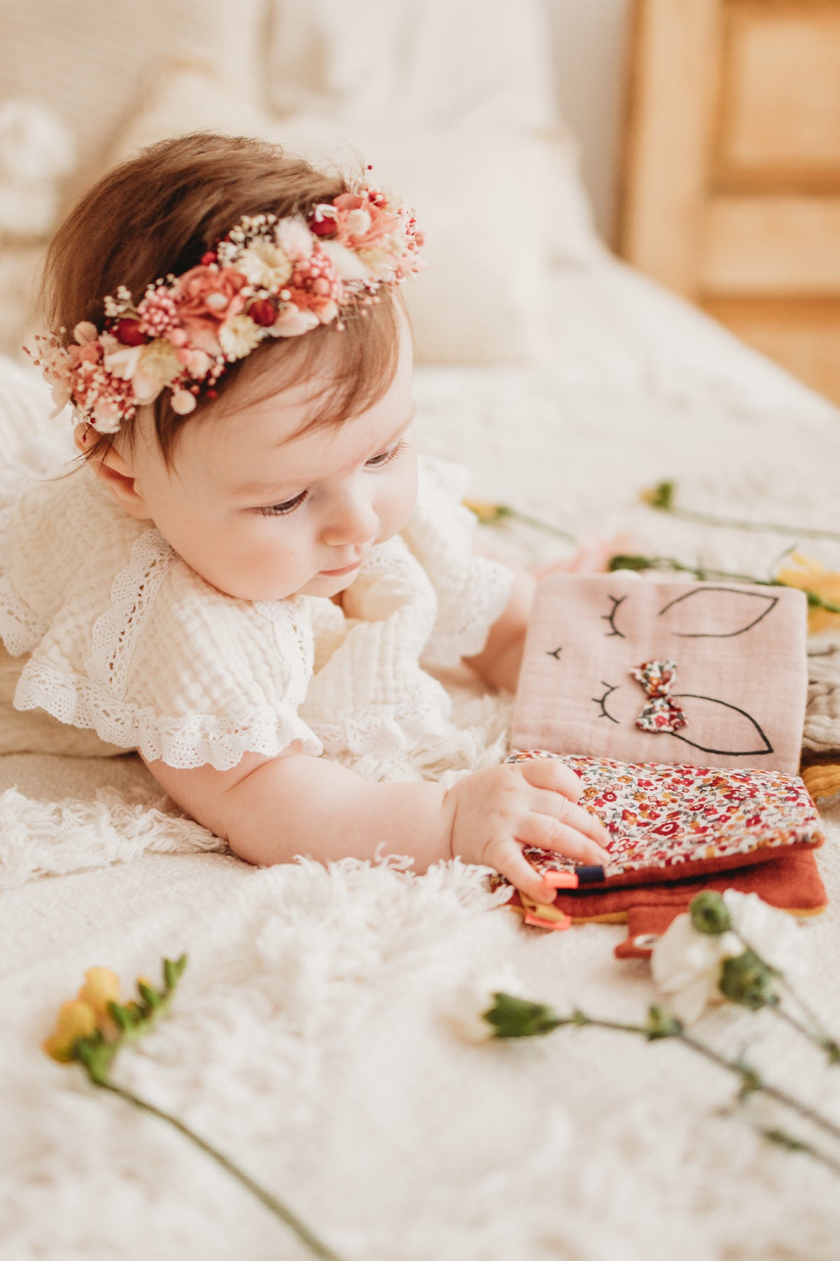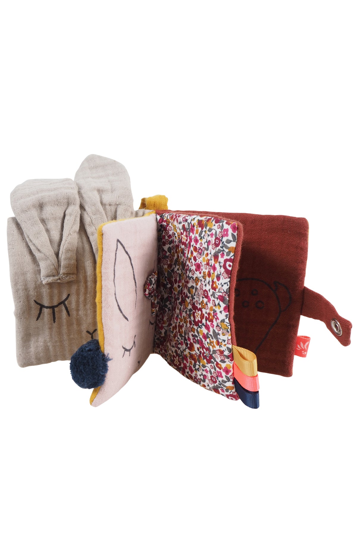 Das Buch hat einen Klettverschluss und kann leicht an an dem Kinderwagen, am Autositz oder am Bettchen befestigt werden.
