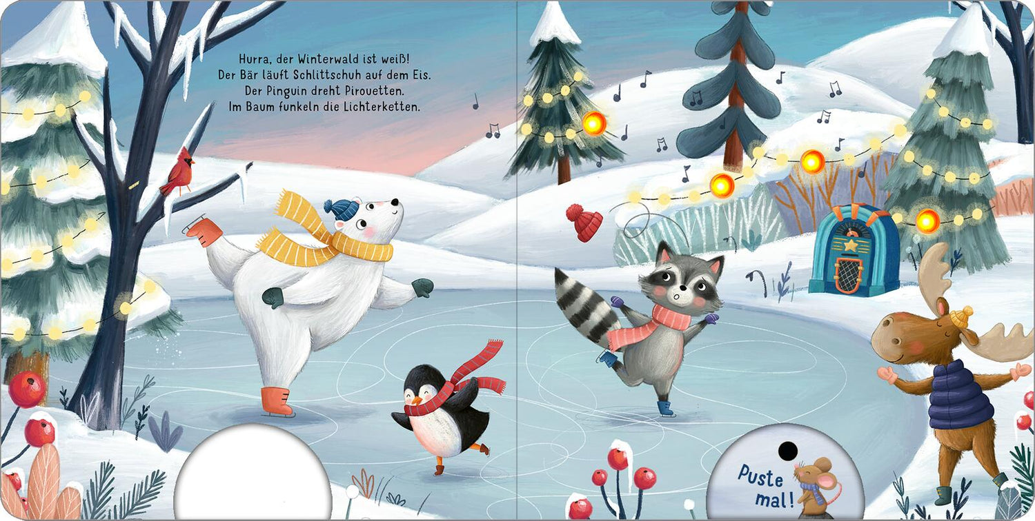 Das interaktive Pustebuch "Hurra, es schneit!" entführt die Kleinsten in eine zauberhafte Winterwelt voller Freude und Spaß.