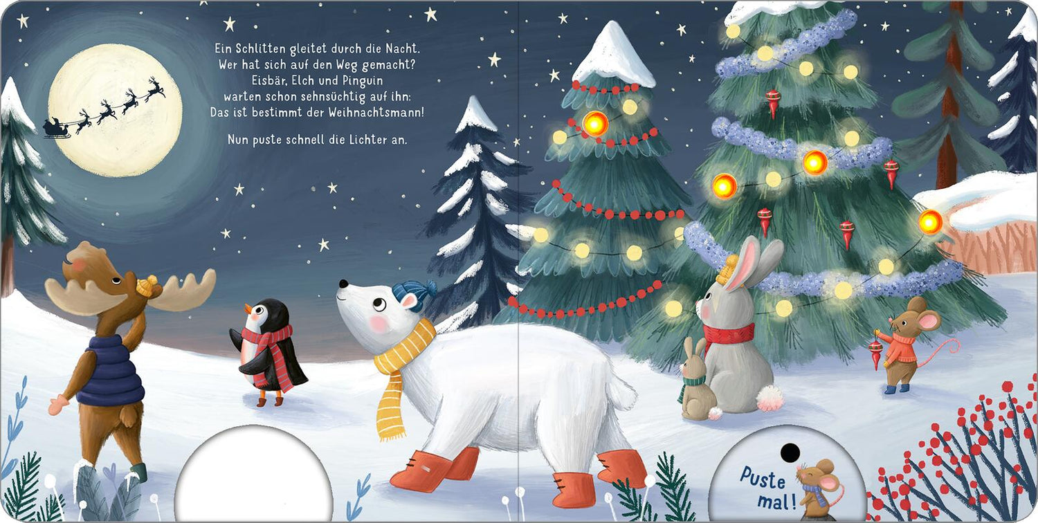 Die liebevoll gestalteten Seiten laden zum Mitmachen und Träumen ein, während die LED-Lichter durch gezieltes Pusten zum Leuchten gebracht werden.