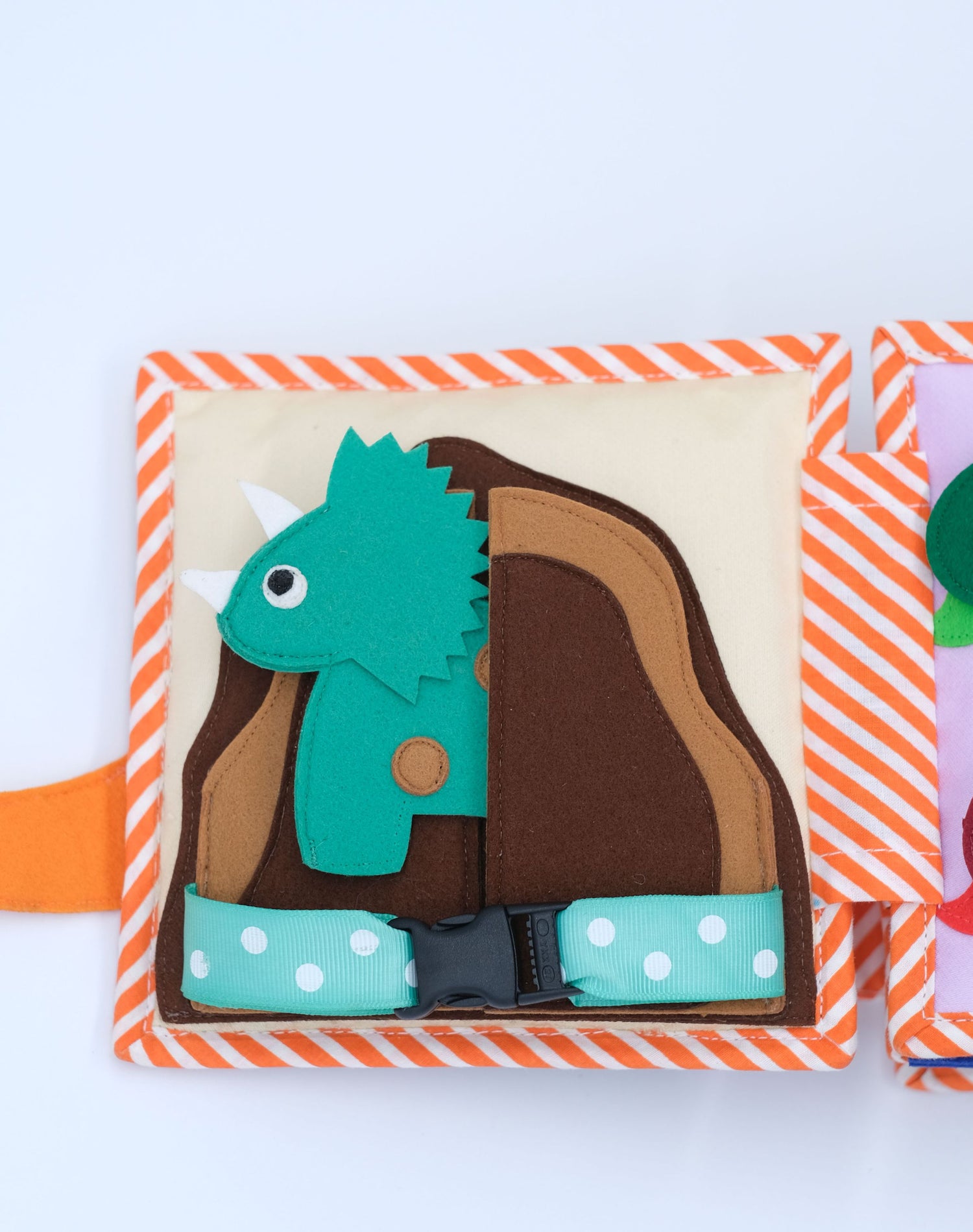 Das Mini Quiet Book "Dinofreunde" ist geschlechtsneutral gestaltet und bietet jedem Kind spannende und lehrreiche Unterhaltung.