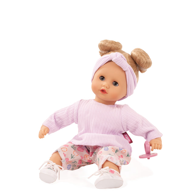 perfekt. Die Muffin ist mit flauschiger Watte und Granulat gefüllt. Die Puppe hat blaue Schlafaugen.