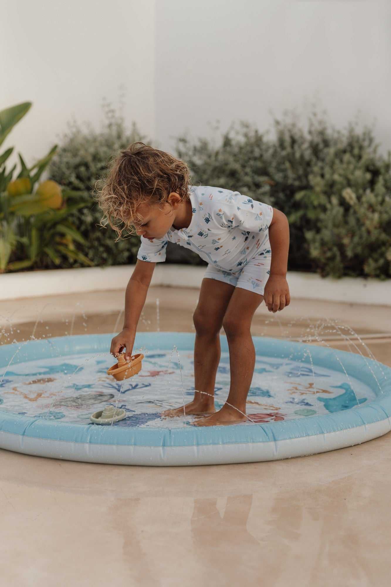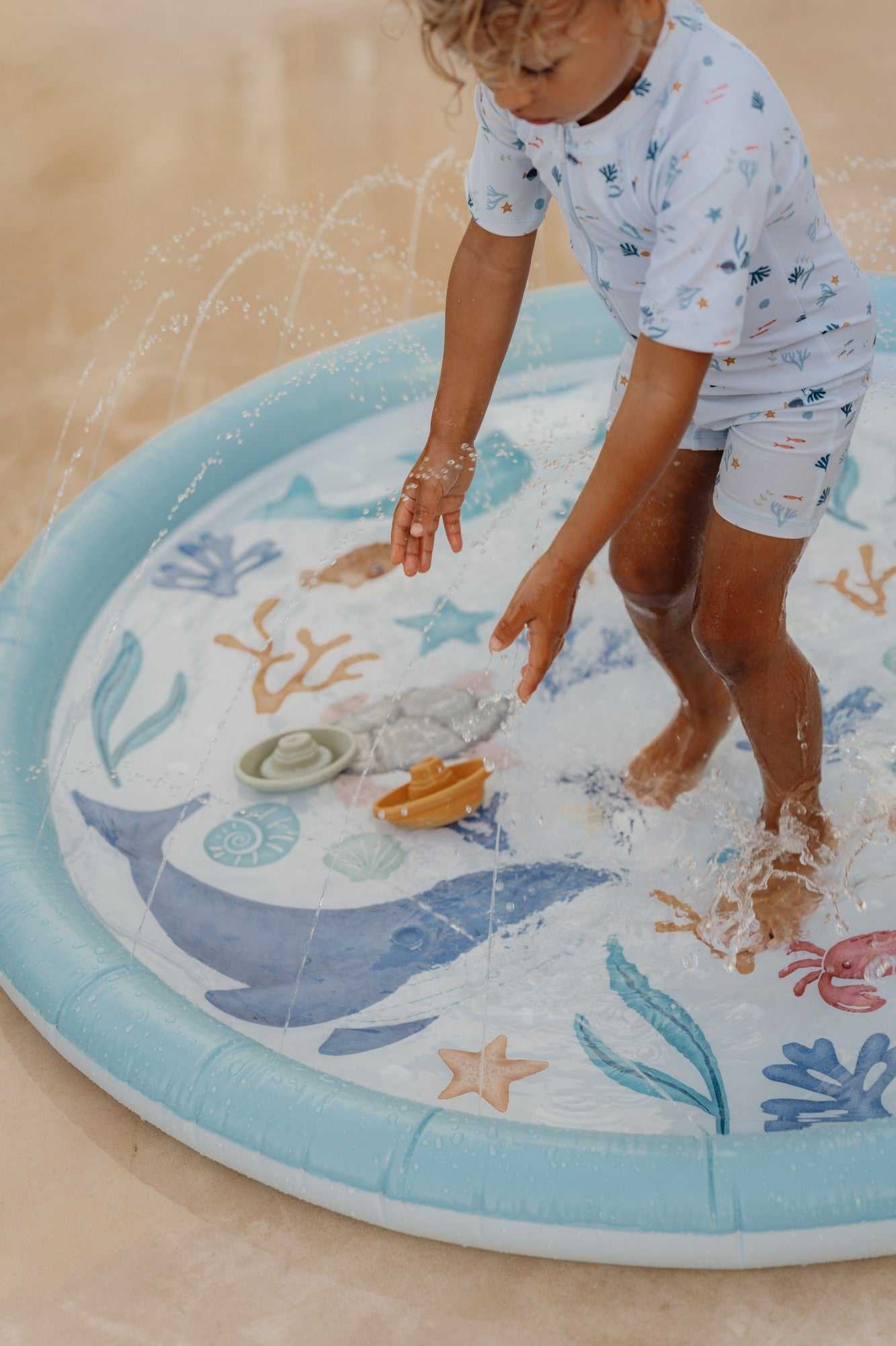 An heißen Sommertagen sorgt diese Wasserspielmatte von Little Dutch für Abkühlung und Beschäftigung.