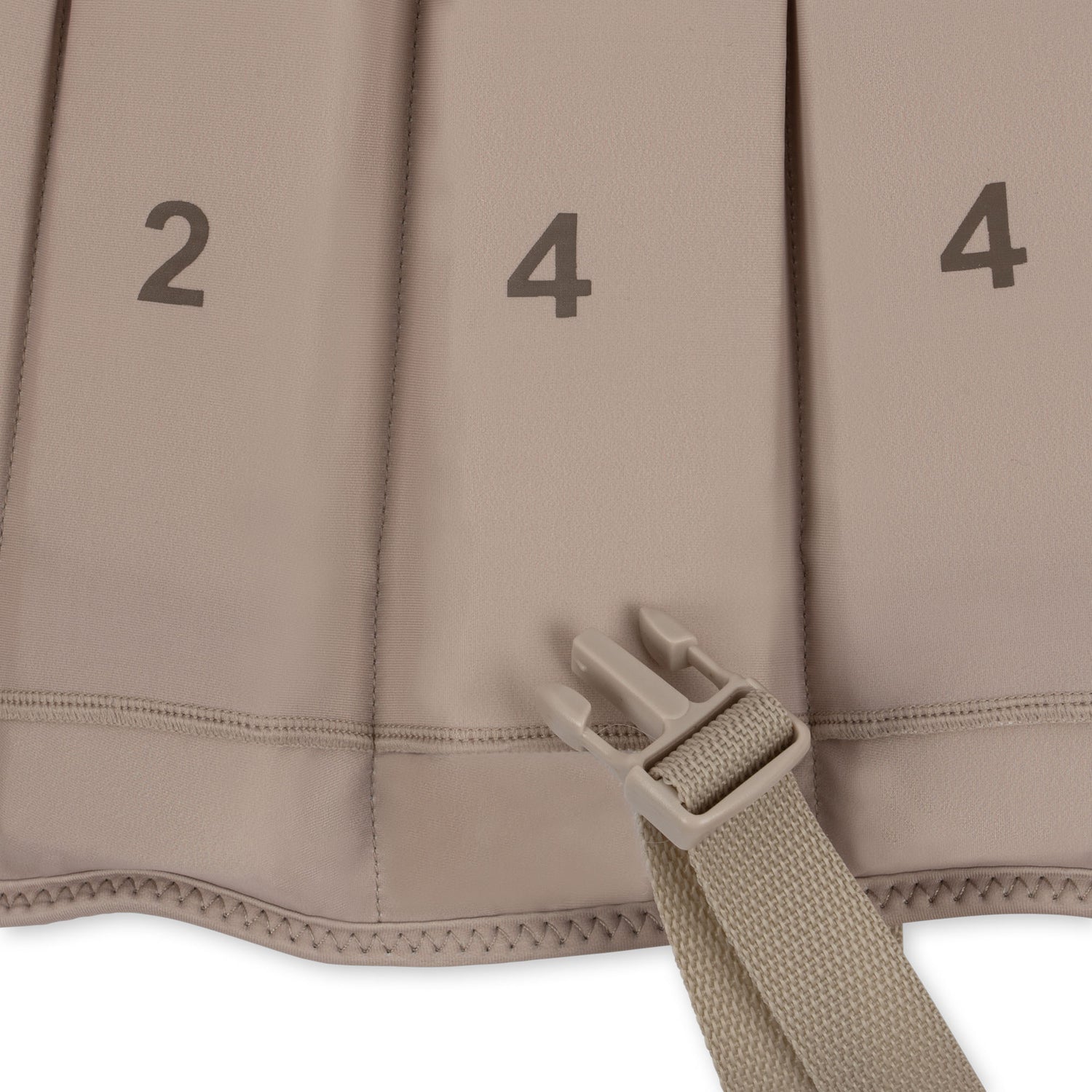 Design mit Reißverschluss und Klettverschluss. Mit einem Sicherheitsgurt im Schritt, sodass das Kind niemals aus der Weste gleiten kann.