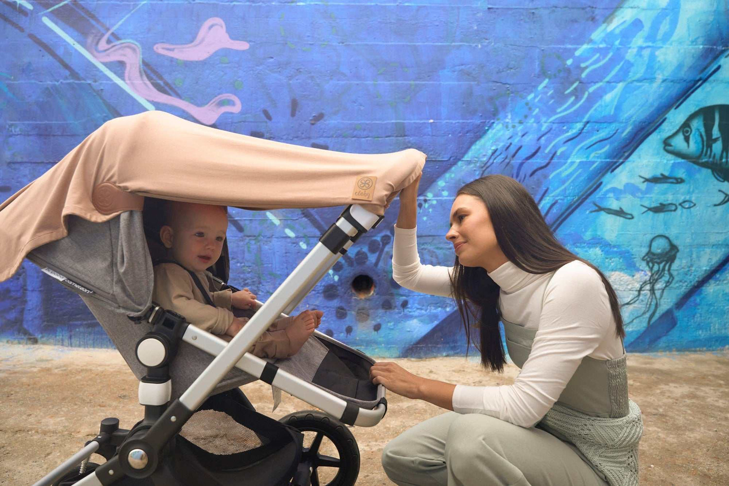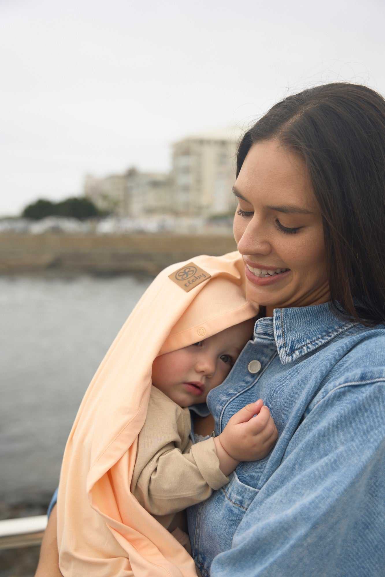 * Trageüberzug – Befestige die Decke an den Trägern deiner Trage und schon sind Babys, Beine und sogar der Kopf vor Sonne (und Wind) geschützt