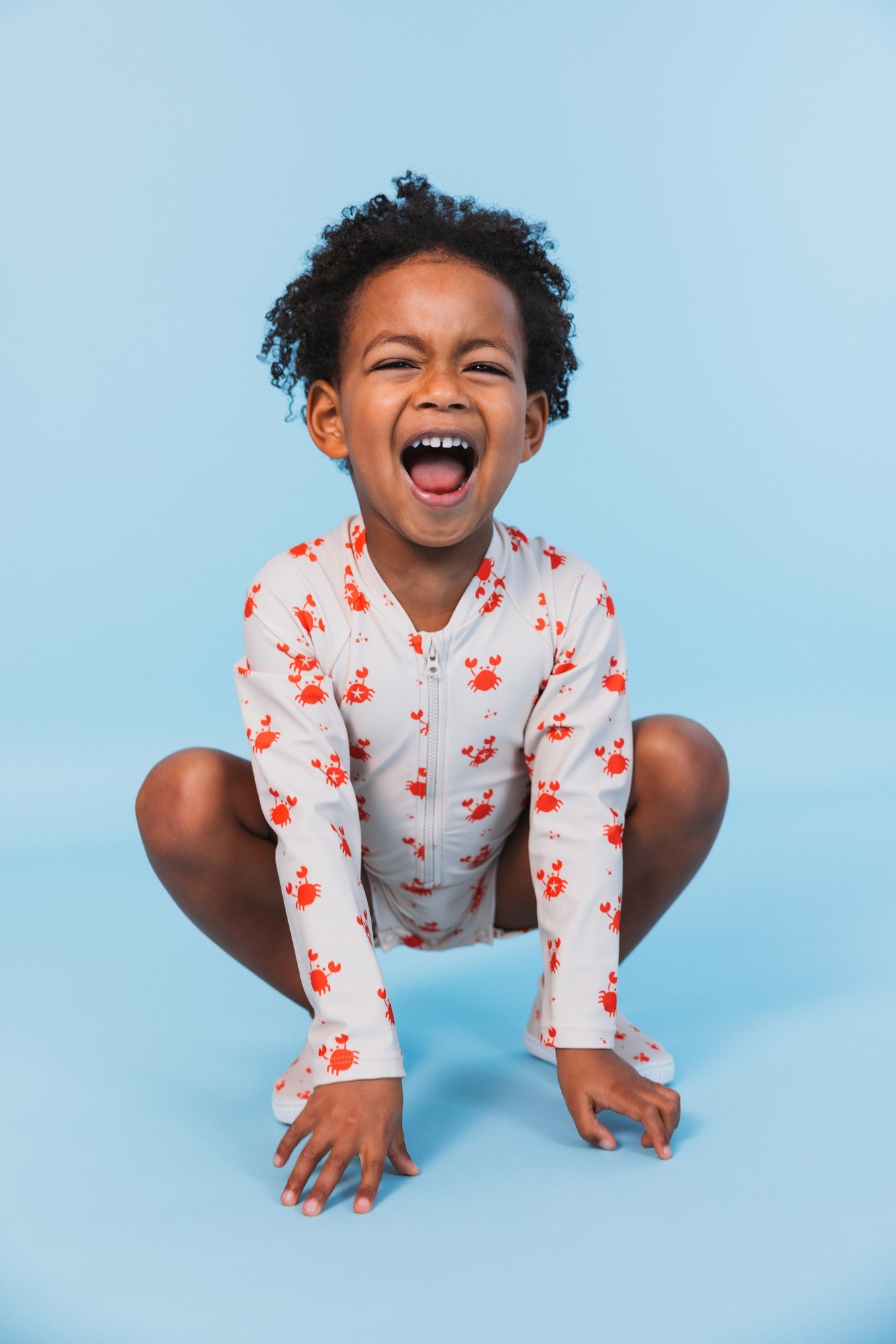 Suchen Sie einen Badeanzug, der sowohl lustig als auch funktional ist? Dieser langärmlige Badeanzug im Oh Crab-Print vereint einen verspielten Look mit optimalem Schutz. Dank des UV-blockierenden Materials ist Ihr Kleines vor schädlicher Sonneneinstrahlung geschützt, egal ob beim Spielen in den Wellen oder beim Sandburgenbauen!