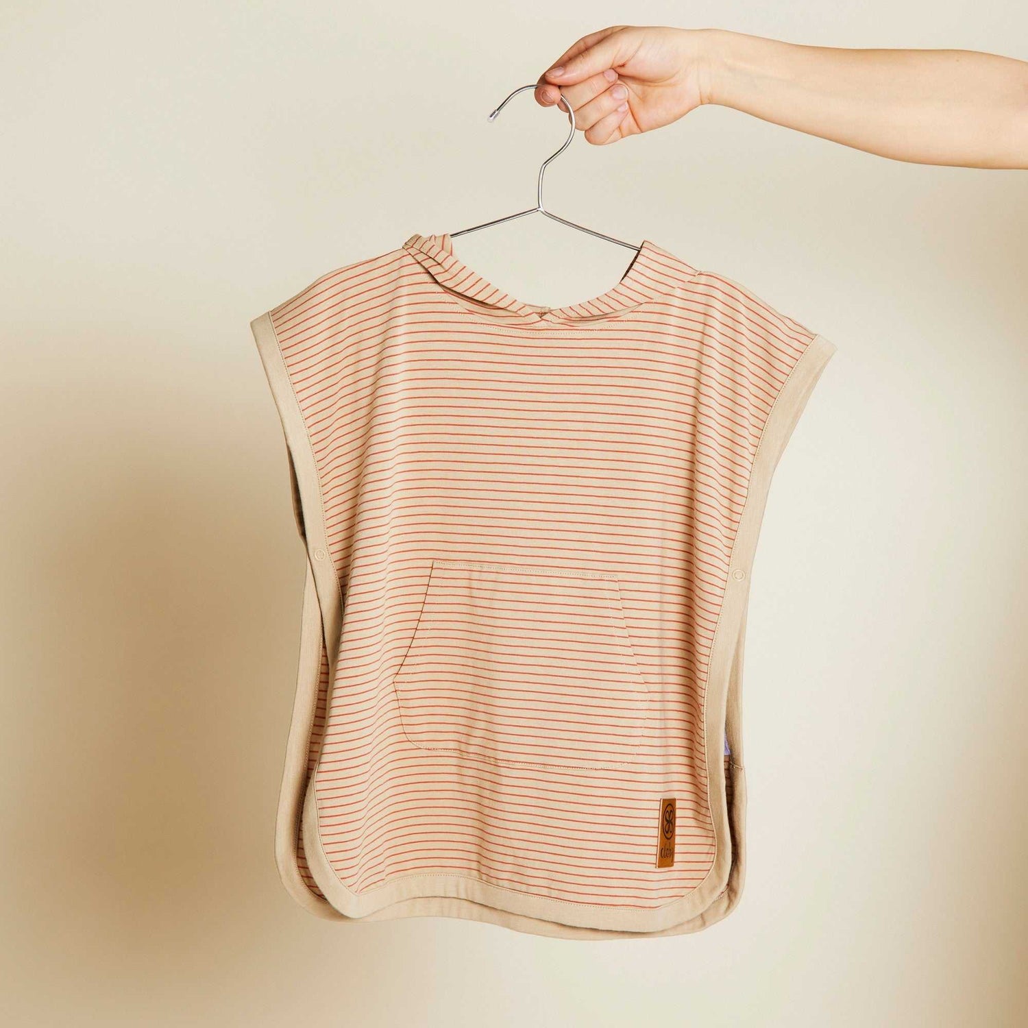 Der Poncho ist mit seiner Kapuze und einer Tasche vorne megapraktisch und mit den 2 Druckknöpfen unter dem Arm bleibt er auch an Ort und Stelle.