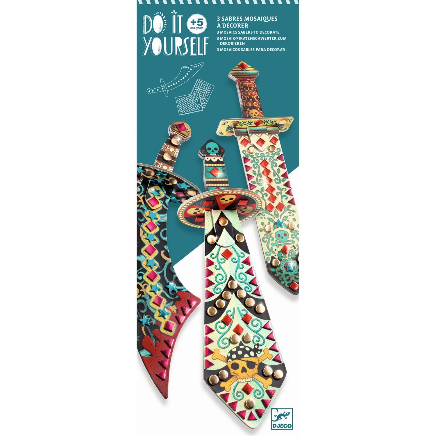 Das do it yourself „Mosaik Piratenschwert“ DJ07902 von Djeco aus hartem Karton. Mit farbenfrohen selbstklebenden glänzernden Mosaik- Stickern gestaltest und dekorierst du deine eigenen Schwerter. Hier ist Kreativität, Fingerfertigkeit und Geduld gefragt. Für kleine Piraten ab 5 Jahren.