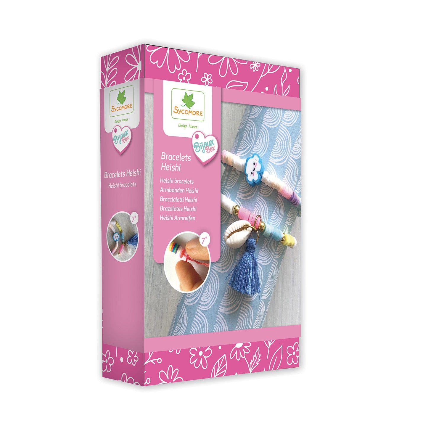 Das Schmuckset von Sycomore bietet Kindern ab 7 Jahren die Möglichkeit, kreative Mode-Armbänder mit Heishi-Perlen zu gestalten.