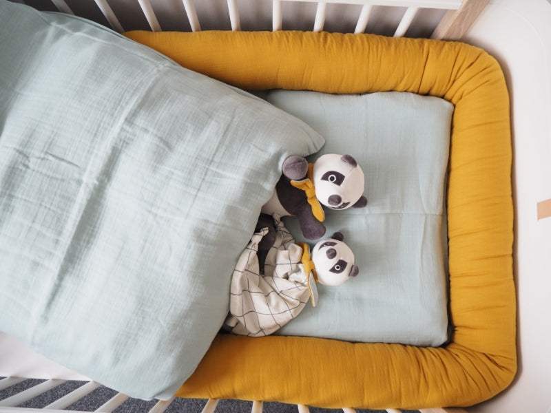 Schenke deinem Baby traumhafte Nächte mit der kuschelig weichen Kikadu Bettwäsche Muslin! Hergestellt aus 100% GOTS-zertifizierter Bio-Baumwolle bietet diese Bettwäsche ein unvergleichlich sanftes Gefühl auf der zarten Babyhaut. Die atmungsaktive und saugfähige Baumwolle sorgt für ein angenehmes Hautklima und einen ungestörten Schlaf. Das zeitlose Design in einen sanften Mint Farbton fügt sich perfekt in jedes Kinderzimmer ein und lässt sich wunderbar mit anderen Textilien kombinieren. Die Bettwäsche besteht aus einem Deckenbezug (100 x 135 cm) und einem Kopfkissenbezug (40 x 60 cm). Beide Teile sind mit einem praktischen Reißverschluss versehen, der das Wechseln der Wäsche erleichtert.