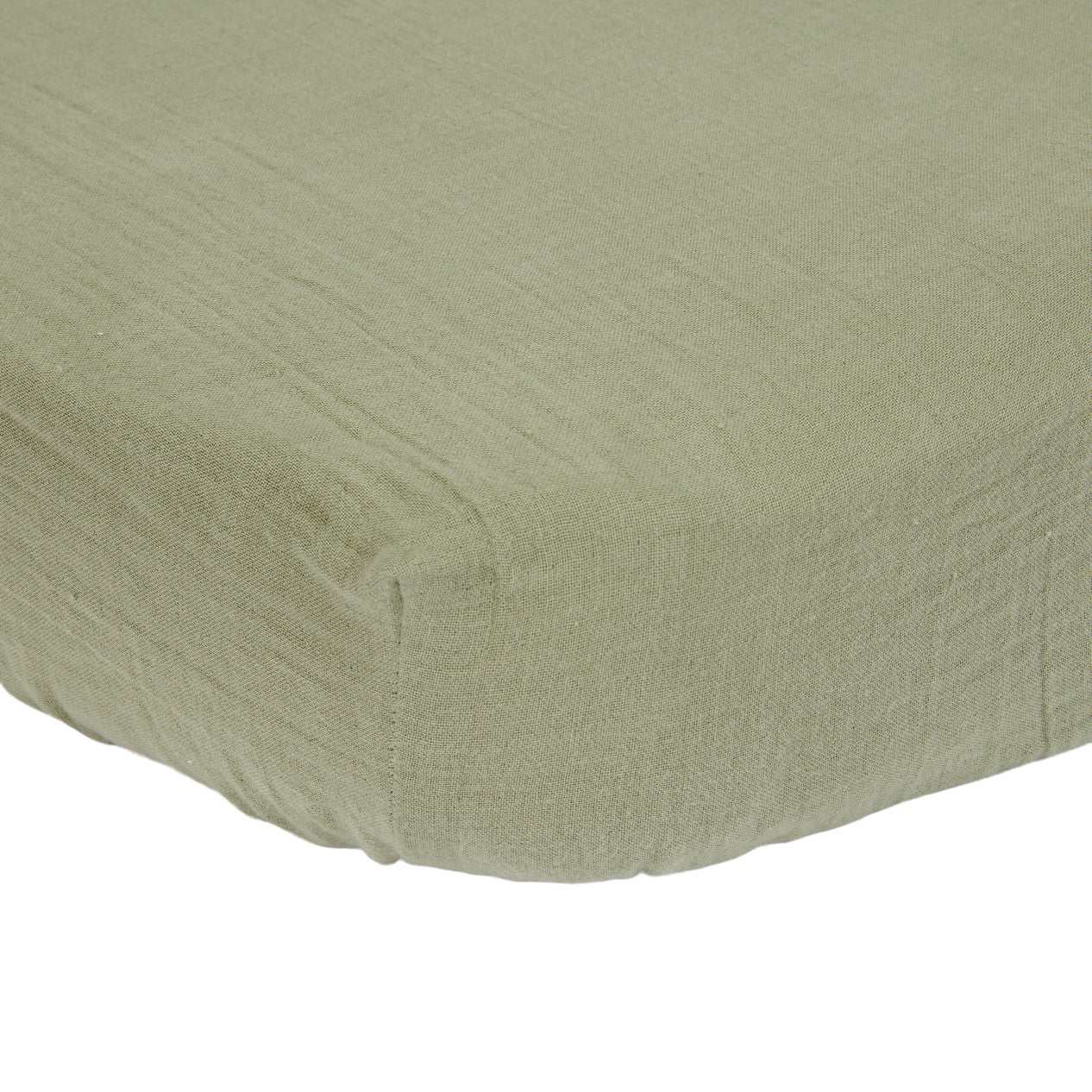 Das Spannbetttuch aus Musselin in der Größe 70x140x150 in Olive von Little Dutch bietet ein besonders sanftes Hautgefühl.