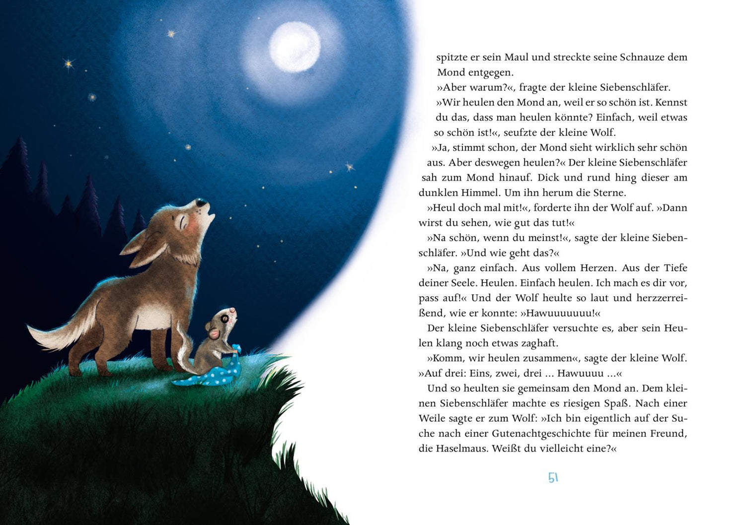 Wenn die Haselmaus beim kleinen Siebenschläfer übernachtet, soll alles perfekt sein! Der kleine Siebenschläfer strengt sich mächtig an. Doch als die Haselmaus eine Gutenachtgeschichte hören will, weiß der kleine Siebenschläfer nicht weiter. Vielleicht kennt ja der Specht eine Geschichte. Doch der Specht ist zu beschäftigt. Auch die Nachtigall und der Frosch können nicht helfen. Genau wie die anderen Tiere im Wald. Traurig kehrt der kleine Siebenschläfer zurück in seine Höhle. Er denkt an seine Freunde und da wird ihm plötzlich klar: Er hat ja heute Nacht eine ganze Schnuffeldecke voller Geschichten gesammelt!