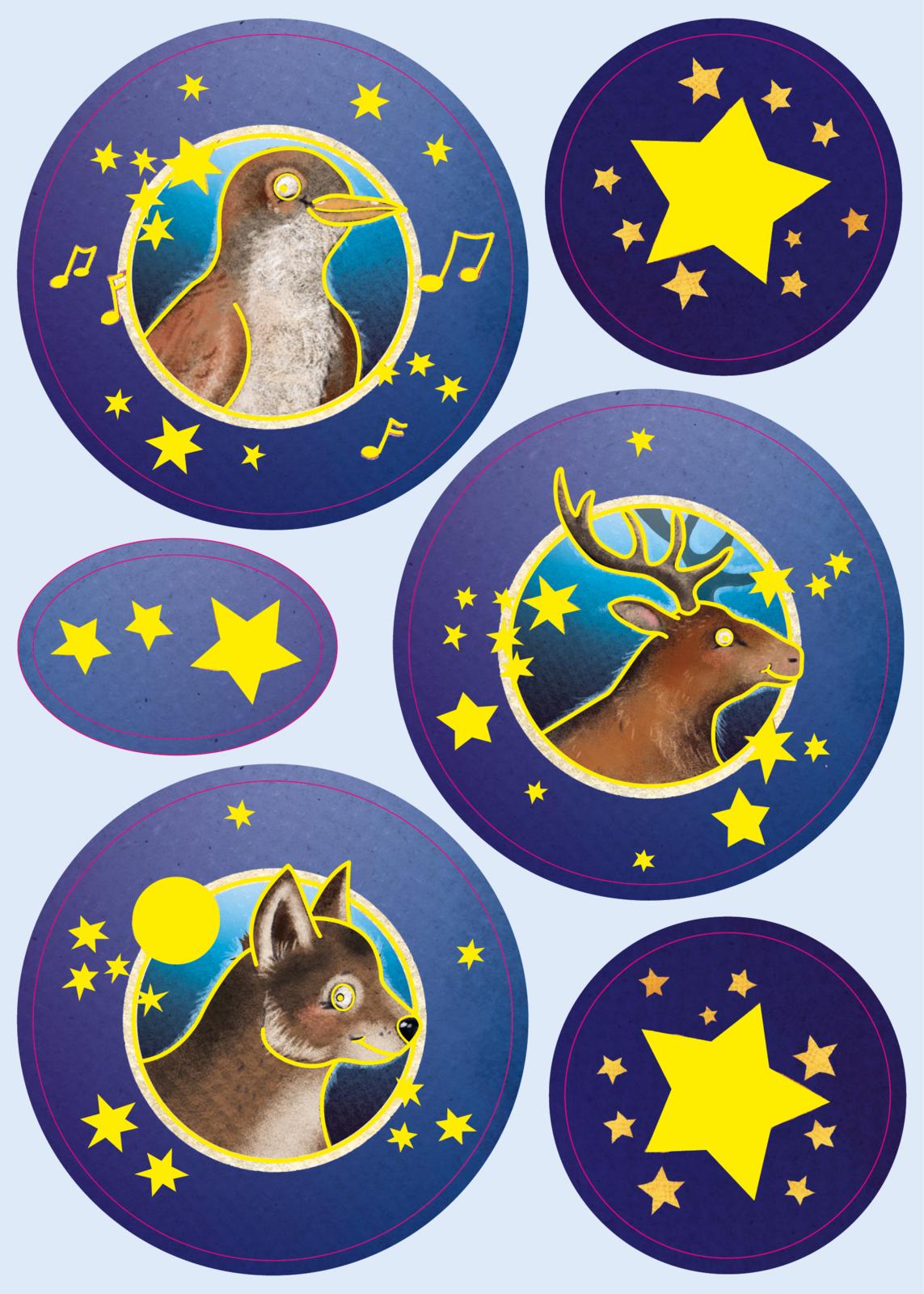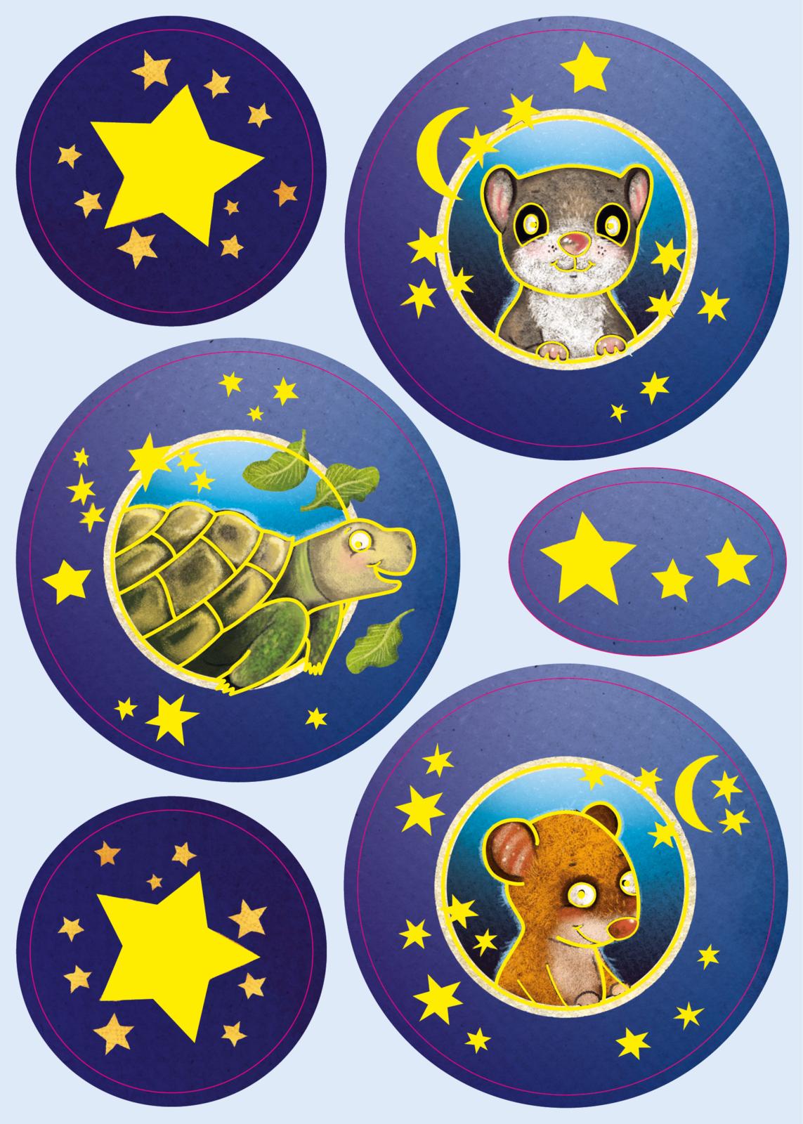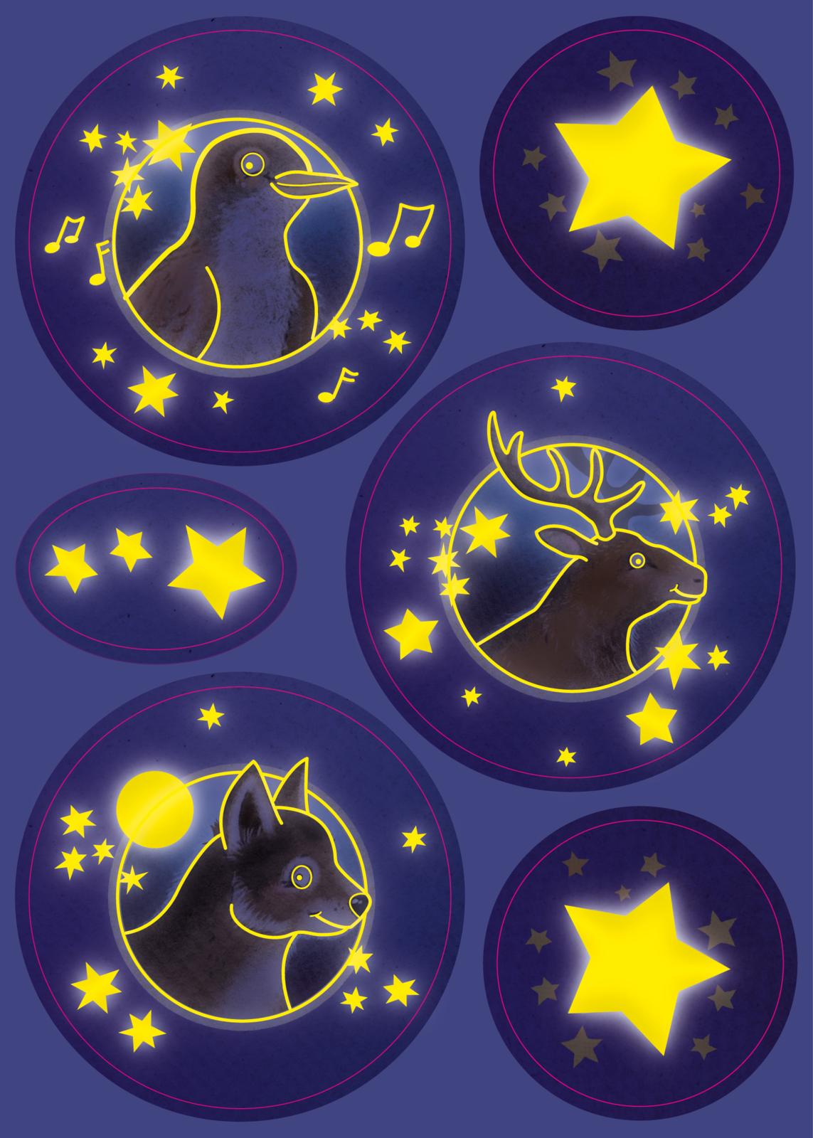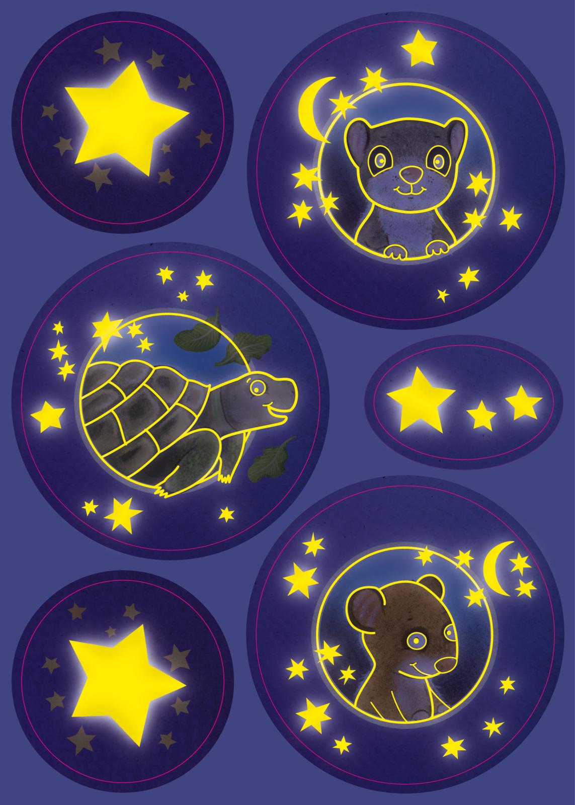 mit hochwertigen, nachtleuchtenden Wandstickern als Extra