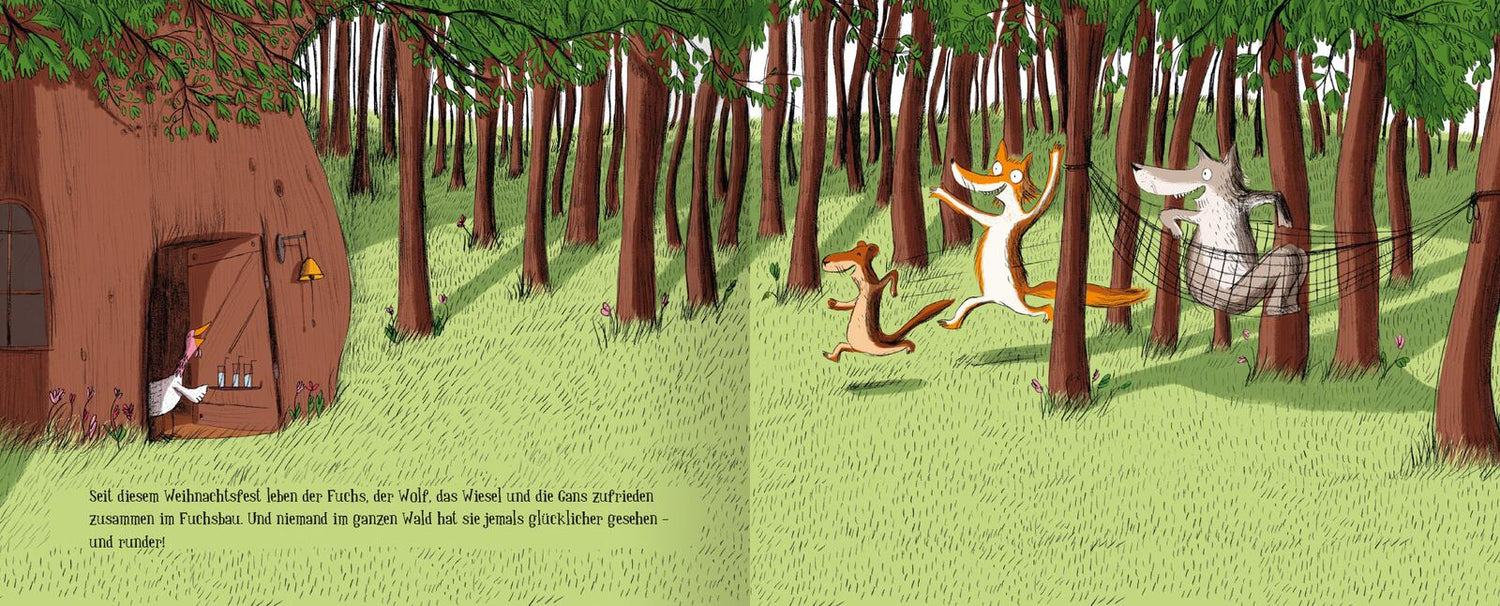 Die frechen Protagonisten, Gans, Fuchs, Wolf und Wiesel, vermitteln auf charmante Weise, dass wahre Freundschaft keine Grenzen kennt.