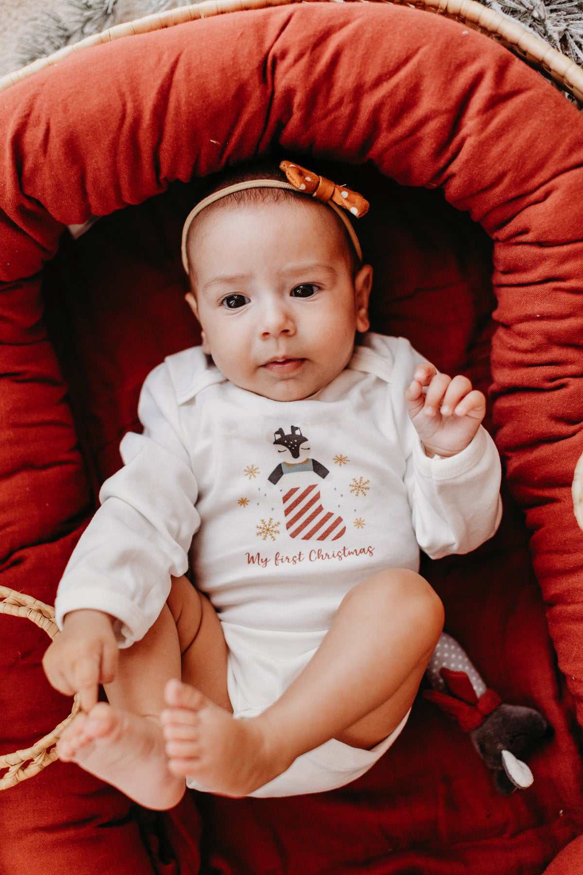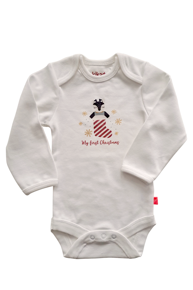 Der niedliche "My First Christmas" Langarm- Body von kikadu, aus 100% Bio-Baumwolle ist das perfekte Outfit für das erste Weihnachtsfest deines Babys.