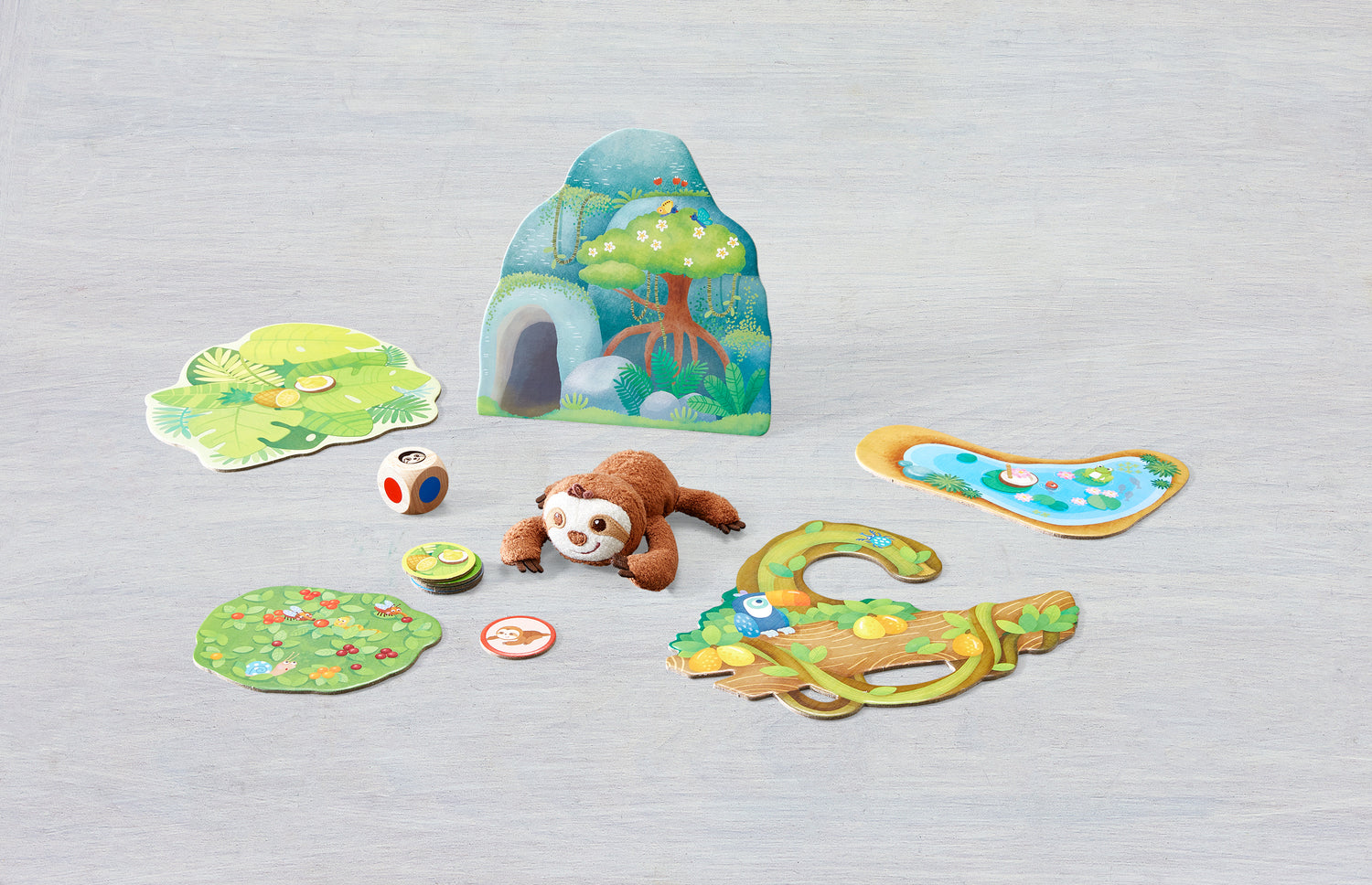 Auf zur Urwald-Expedition! In drei Bewegungsspielen sind die Kinder einem putzigen Faultier auf der Spur. Die Spiele für Kleinkinder haben einfache Regeln für einen schnellen Spielstart allein oder mit bis zu 5 Spielern. Sie fördern die Motorik, das Assoziationsvermögen und die Kommunikation. Ein idealer Einstieg in die Welt der Würfel-Spiele für Kinder ab 2 Jahren! Im Mittelpunkt steht das niedliche Faultier aus Stoff, das auch gerne kuschelt. Also – Faultier, komm mit! Spielend lernen mit HABA. Inhalt: 1 Faultier, 5 Lieblingsorte, 5 Plättchen, 1 Würfel, 1 Spielanleitung. Modell: 306599 Maße: 6,7 x 21,9 x 21,9 cm Spieldauer: 10 Minuten Anzahl der Spieler: 1 bis 5 Altersempfehlung: ab 2 Jahre Material: Pappe, Buche, Magnet, Polyester