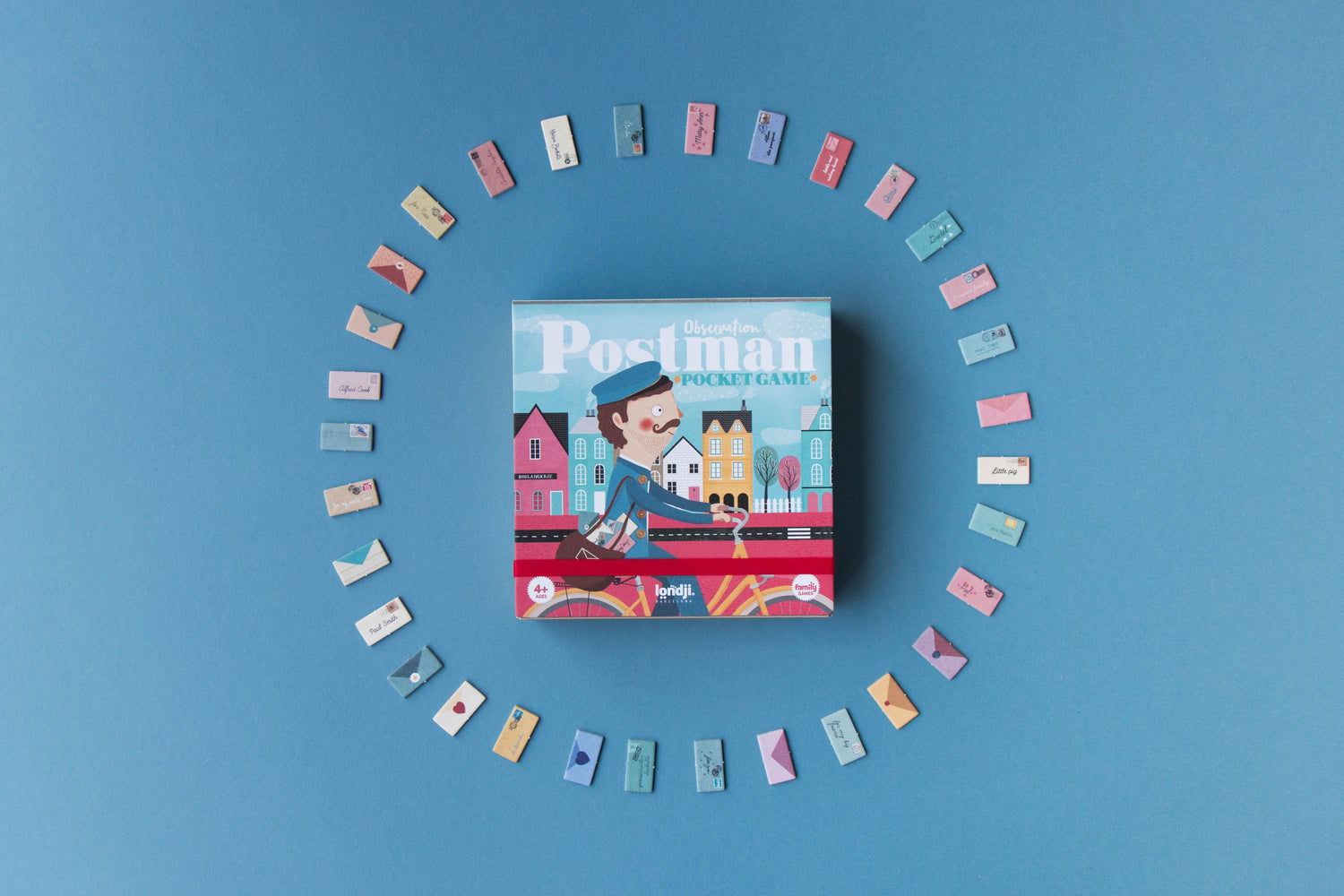 Ein fröhlicher Spielespaß für die ganze Familie ist das Gesellschaftsspiel 'Postman' von Londji, hier als Pocket-Version für unterwegs! Der Postbote hat ja soo viel zu tun, aber sicherlich könnt ihr ihm dabei behilflich sein. Versucht möglichst viele Briefe an die richtigen Nachbarn zu verteilen. Der Schnellste hat gewonnen. Bevor es losgehen kann, muss das Spielbrett zusammengepuzzelt werden, so habt ihr schon viel Spaß im Vorhinein! Das Spiel eignet sich für 2-6 Spieler ab 3 Jahren und ist eine tolle Geschenkidee, an der die ganze Familie ihren Spaß haben wird. Made in Barcelona.