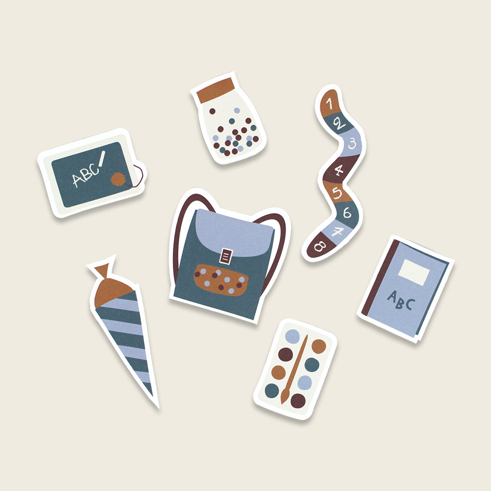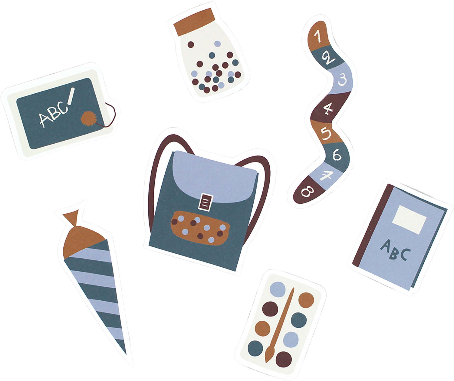 Eine super schöne Idee zur Einschulungsfeier deines kleinen Schatzes ist diese Box mit 60 liebevoll gestalteten kleinen Tischdeko-Teilchen von Ava & Yves.