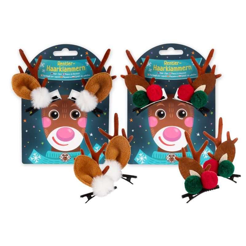 Die Clips sind mit samtigen Geweih und plüschigen Ohren versehen und werden sicherlich alle Blicke auf sich ziehen, sei es in der Weihnachtszeit, zu Karneval oder auf Mottopartys.