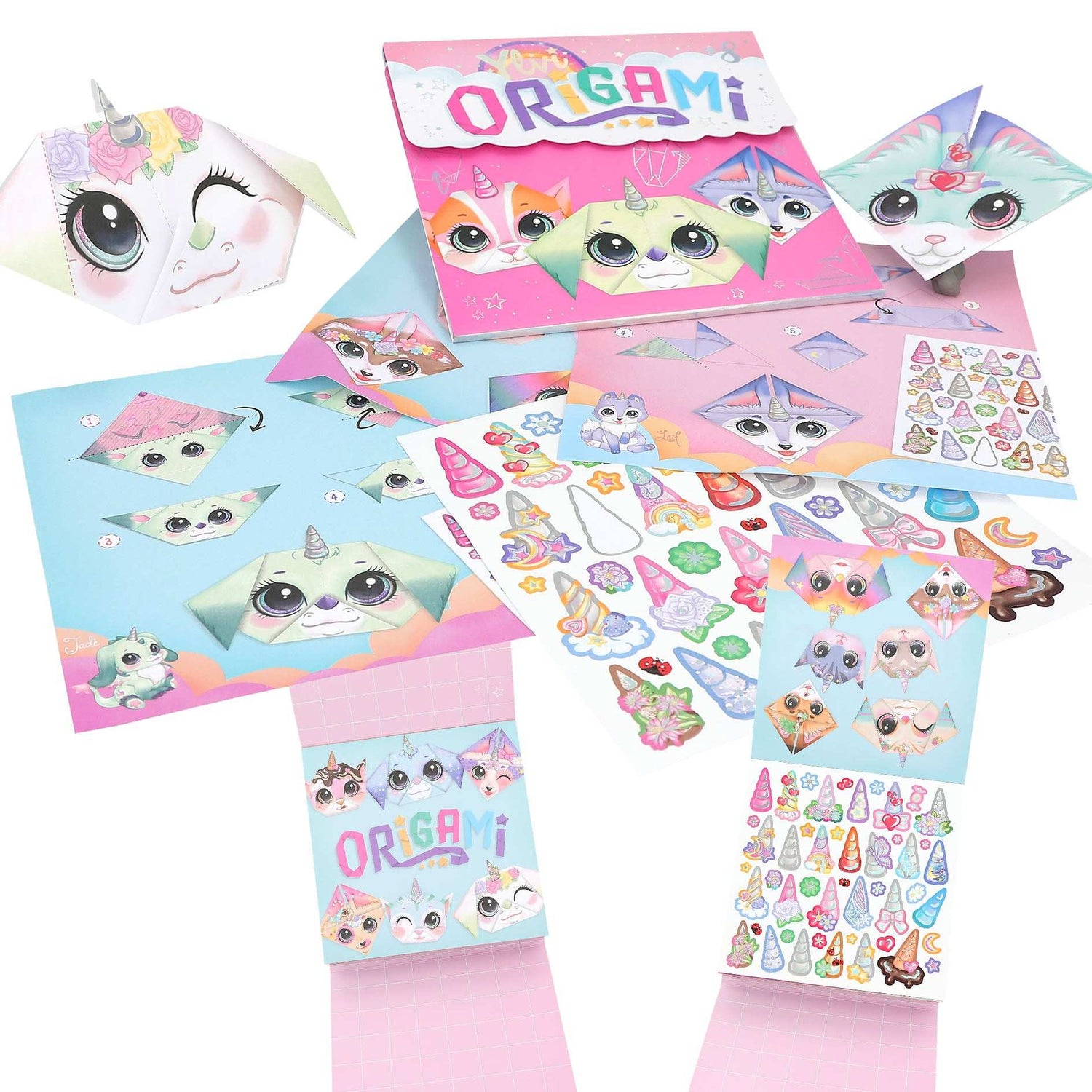 Dieses zauberhafte Set ermöglicht es, aus 27 bedruckten Blättern niedliche magische Tiere zu erschaffen - alles durch einfaches und kreatives Falten.