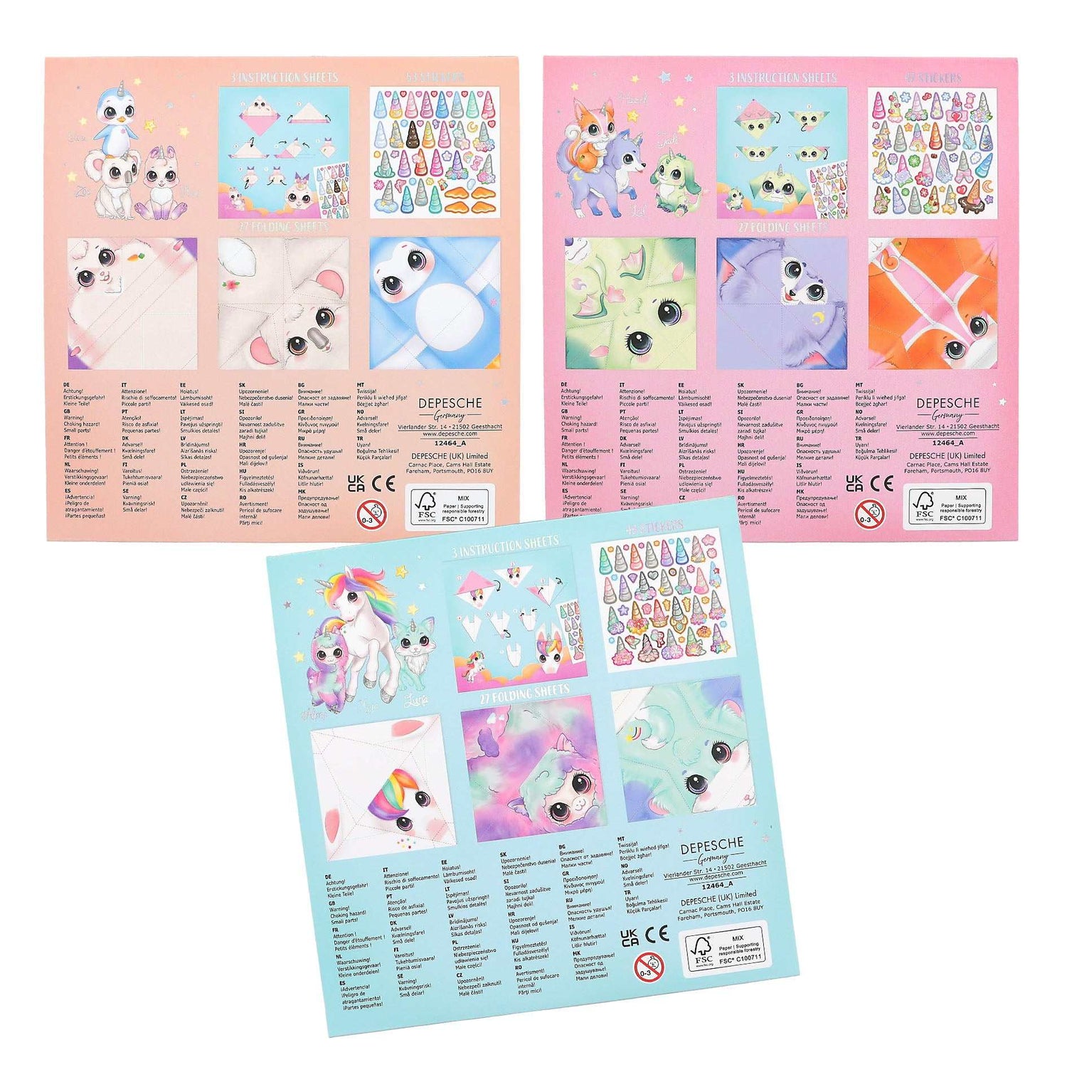 Im Set enthalten sind 3 Faltanleitungen, die Ihnen Schritt für Schritt zeigen, wie Sie die Blätter in entzückende magische Tiere verwandeln können.