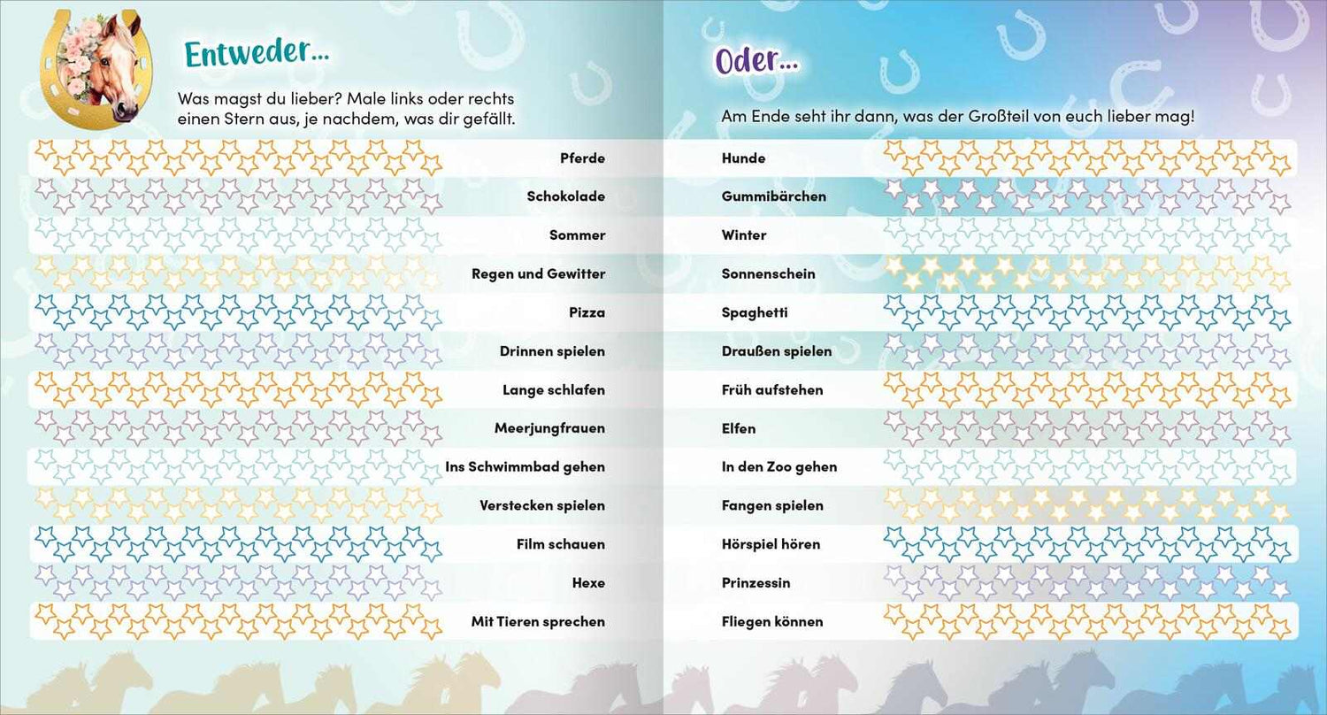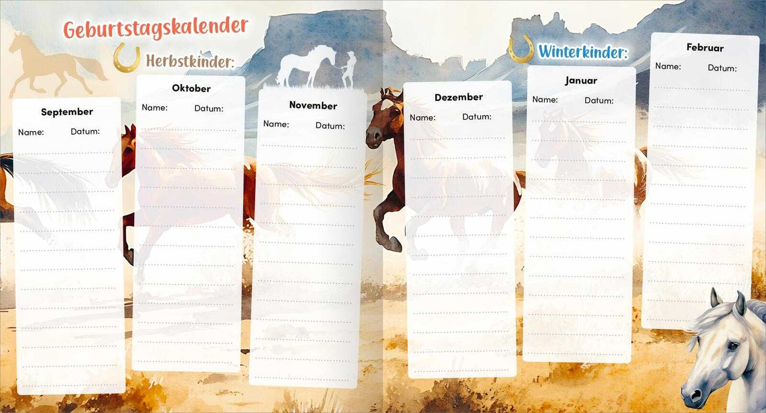 Ein tolles Freundschaftsbuch für Pferdefans. Tolle Bilder begleiten jede Seite und machen das Eintragen noch schöner. Ein großer Geburtstagskalender erinnert immer an die Geburtstage aller deiner Freunde und Platz für viele schöne Fotos und lustige Sprüche von euch gibt es natürlich auch.