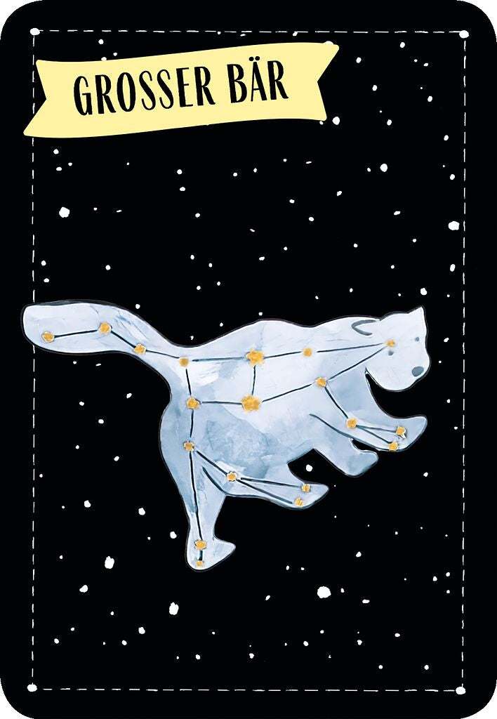 30 stabile Karten mit liebevoll gestalteten Illustrationen zeigen bekannte Himmelskörper, erklären ihre Bedeutung und ihre Lage am Nachthimmel.