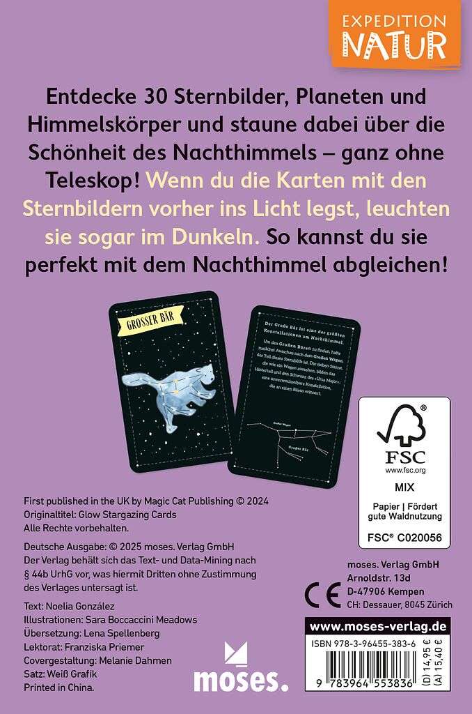 Info: Kartenset mit 30 Sternbildern und Planeten, mit Glow-in-the-Dark-Effekt, fachlich fundierte Texte, kindgerecht erklärt,