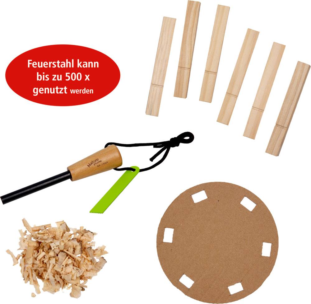 Das Coppenrath – Die Spiegelburg Nature Zoom Lagerfeuer-Starterset ist ein ideales Outdoor-Zubehör für kleine Entdecker und Abenteurer. Mit diesem Set erhalten Kinder alles, was sie für ein gemütliches und sicheres Lagerfeuer benötigen. Enthalten sind 1 Feuerstahl, 6 Holzstäbe, 1 Pappring und 1 Tütchen mit Holzspänen, um das Feuer direkt im Freien anzuzünden, sei es im eigenen Garten, beim Camping oder am Lagerfeuerplatz. Das liebevoll gestaltete Nature Zoom-Design spricht insbesondere Naturfans an und fördert spielerisch den Einstieg in kleine Outdoor-Projekte. Die kindgerechten Bestandteile des Sets sind einfach zu handhaben und unterstützen die Motorik sowie die Achtsamkeit gegenüber der Natur. Egal ob bei einem Familienausflug oder dem nächsten Pfadfinder-Abenteuer, das Lagerfeuer-Starterset ist ein zuverlässiger Begleiter für junge Forscher. Es eignet sich auch hervorragend als Geschenk für kleine Abenteurer, um draußen spannende Erlebnisse zu ermöglichen und die Faszination für Feuer und Natur zu wecken. Das Set beinhaltet 1 Feuerstahl, 6 Holzstäbe, 1 Pappring, 1 Tütchen mit Holzspänen und eine Anleitung. Die Maße betragen 157 x 34 x 150 mm. Das Lagerfeuer-Starterset - Nature Zoom ist für Kinder ab 6 Jahren geeignet und bietet somit eine sichere und unterhaltsame Möglichkeit, die Natur zu erkunden und die Freude am Feuermachen zu entdecken.
