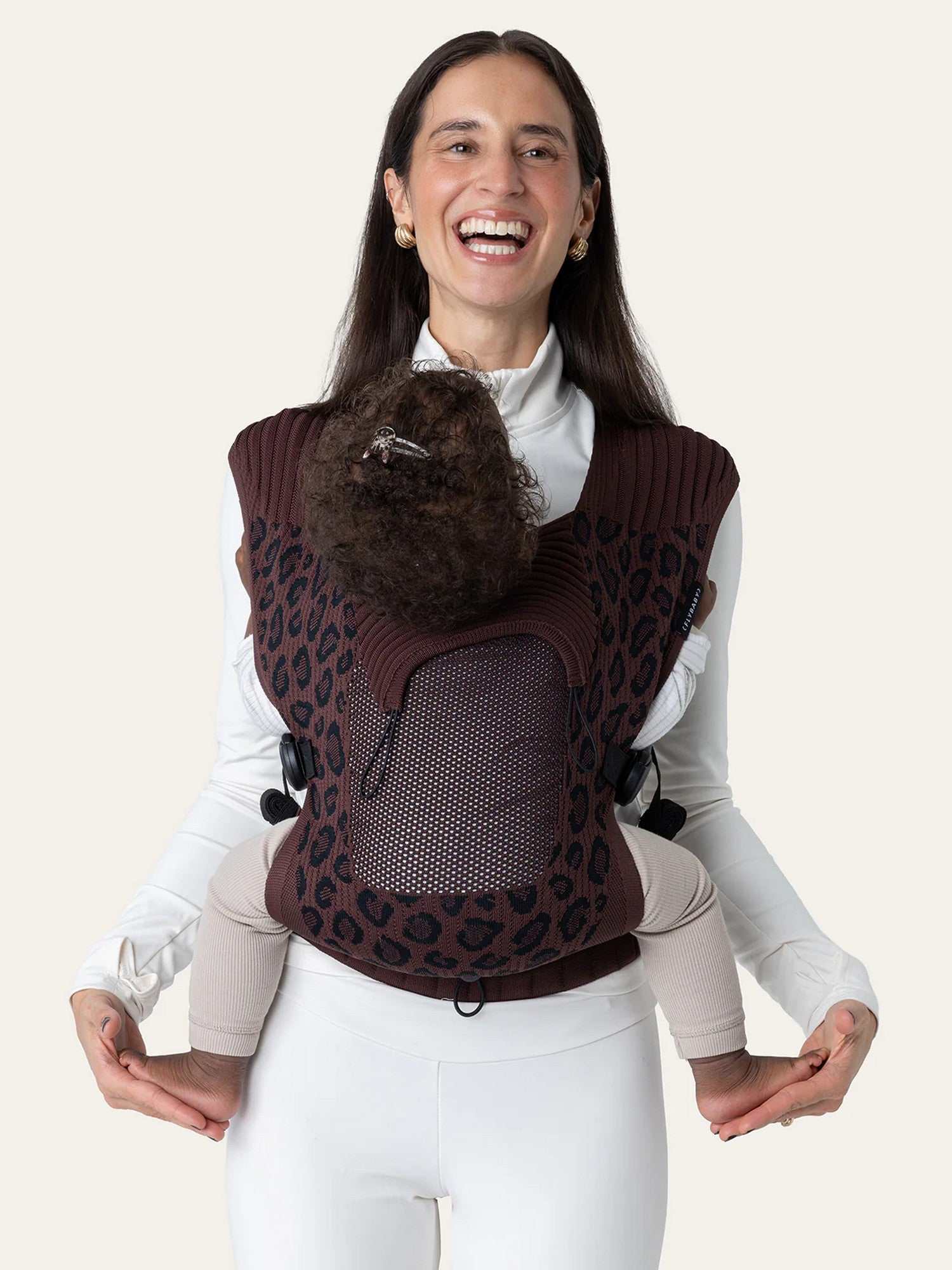 Die Flybaby Babytrage Dark Leo ist ein innovatives Produkt, das sowohl durch sein modernes Design als auch durch seinen hohen Tragekomfort überzeugt. Das elegante Leo-Muster macht die Babytrage zu einem stylischen Accessoire für Eltern, während das atmungsaktive Material für maximalen Komfort für das Baby sorgt. Durch die ergonomische Passform wird die gesunde Hüftentwicklung des Kindes unterstützt, was besonders wichtig für Neugeborene bis Kleinkinder ist. Die Babytrage wird mit Hilfe der 3D-Stricktechnologie gefertigt, die eine nahtlose Passform ohne drückende Materialverbindungen ermöglicht. Trotz ihres geringen Gewichts von nur 425 Gramm ist die Babytrage robust und langlebig. Die flexiblen Zonen der Flybaby Babytrage bieten optimale Unterstützung für das Baby und entlasten gleichzeitig die Schultern der Eltern. Durch das umweltfreundliche 3D-Stricken entsteht kaum Abfall und die Gesamtlaufzeit der Produktion wird reduziert. Das recycelte Polyester-Material ist OEKO-TEX® STANDARD 100 geprüft und nimmt wenig Schmutz auf. Es ist knitterfrei, elastisch und reißfest, egal ob nass oder trocken. Die Flybaby Babytrage Dark Leo ist mit Magnetschnallen ausgestattet, die das Handling sicher und unkompliziert machen. Diese Babytrage ist von Geburt an geeignet und bietet eine optimale Unterstützung für das Baby und die Eltern. Dank ihrer Haltbarkeit kann sie problemlos von einem Kind zum nächsten weitergegeben werden. Insgesamt ist die Flybaby Babytrage ein hochwertiges Produkt, das durch seine innovative 3D-Stricktechnologie, Ergonomie und Nachhaltigkeit überzeugt. Erlebt Nähe, Komfort und Stil mit der Flybaby Babytrage - für entspannte Spaziergänge und unvergessliche Momente mit Eurem Baby.
