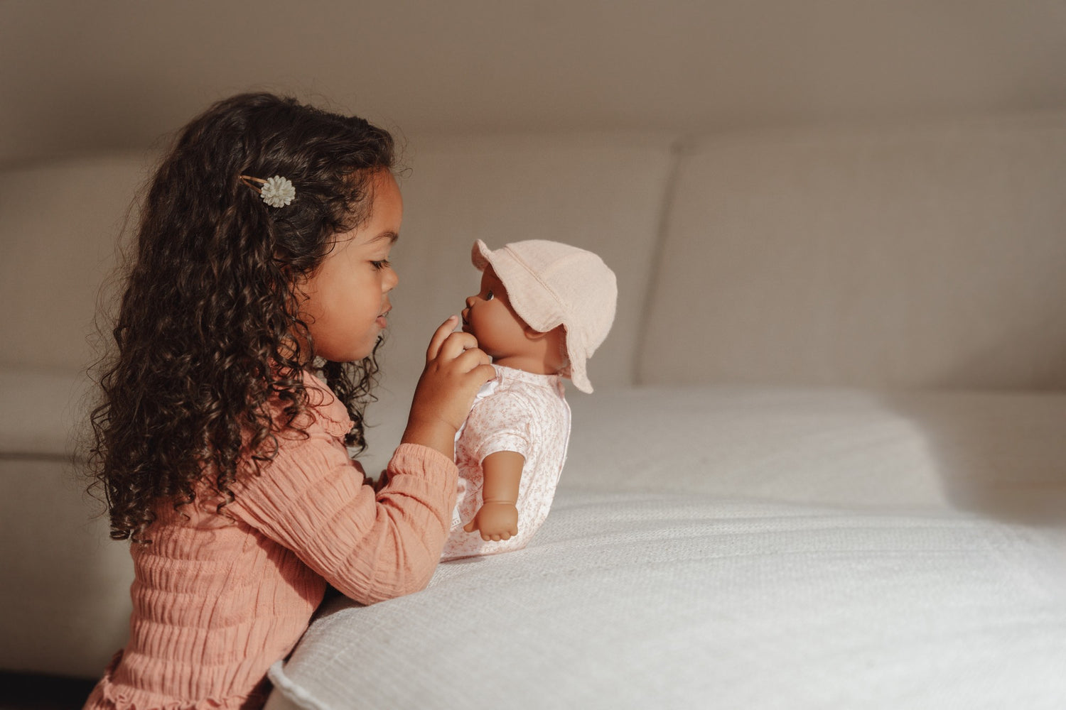 Das Set fördert die Kreativität und das Rollenspiel der Kinder, während sie sich um ihre Puppe kümmern und sich um sie kümmern.