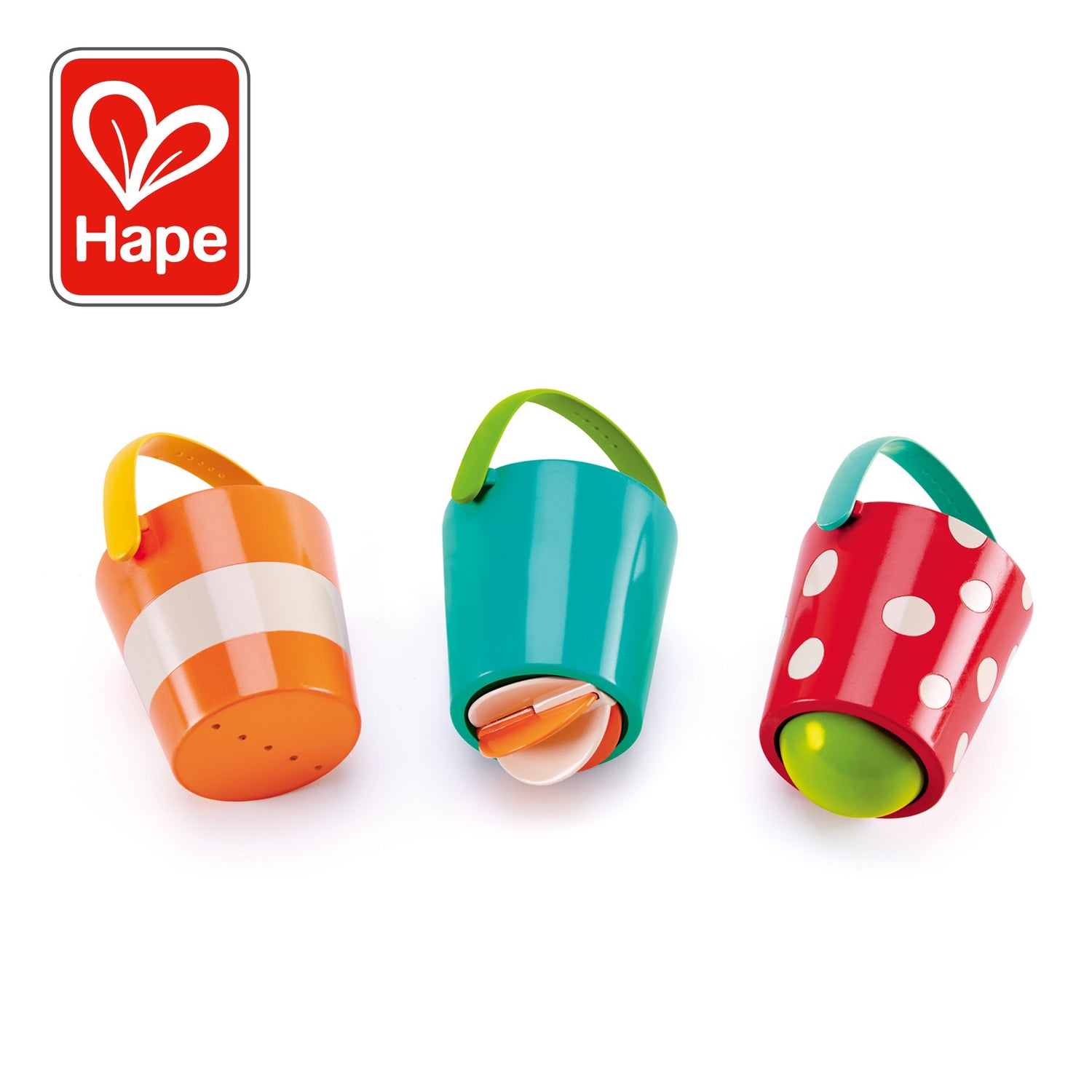 Mit dem bunten Eimer- Set von Hape hat Ihr kleiner Liebling viel Freude im Wasser.