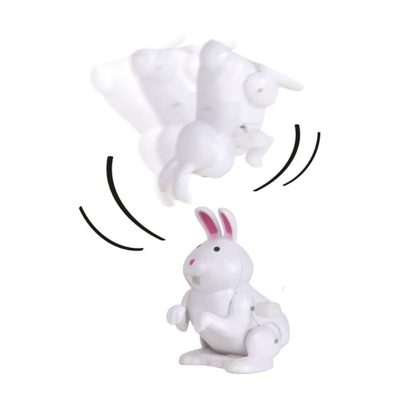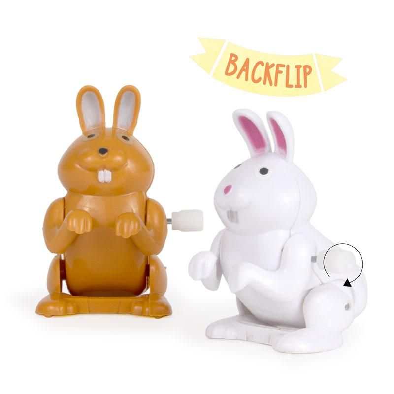 Einfach aufziehen und auf eine gerade Oberfläche stellen - und schon vollführt dieses charmante Häschen mehrfache Saltos!