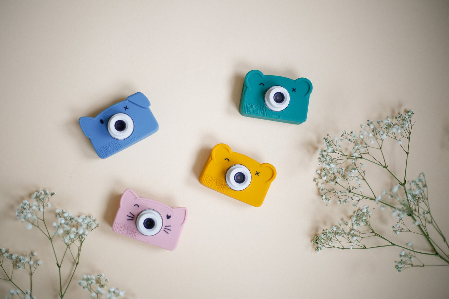 Die Hoppstar Kinderkameras werden mit Silikonhüllen in tollem Design ausgeliefert.