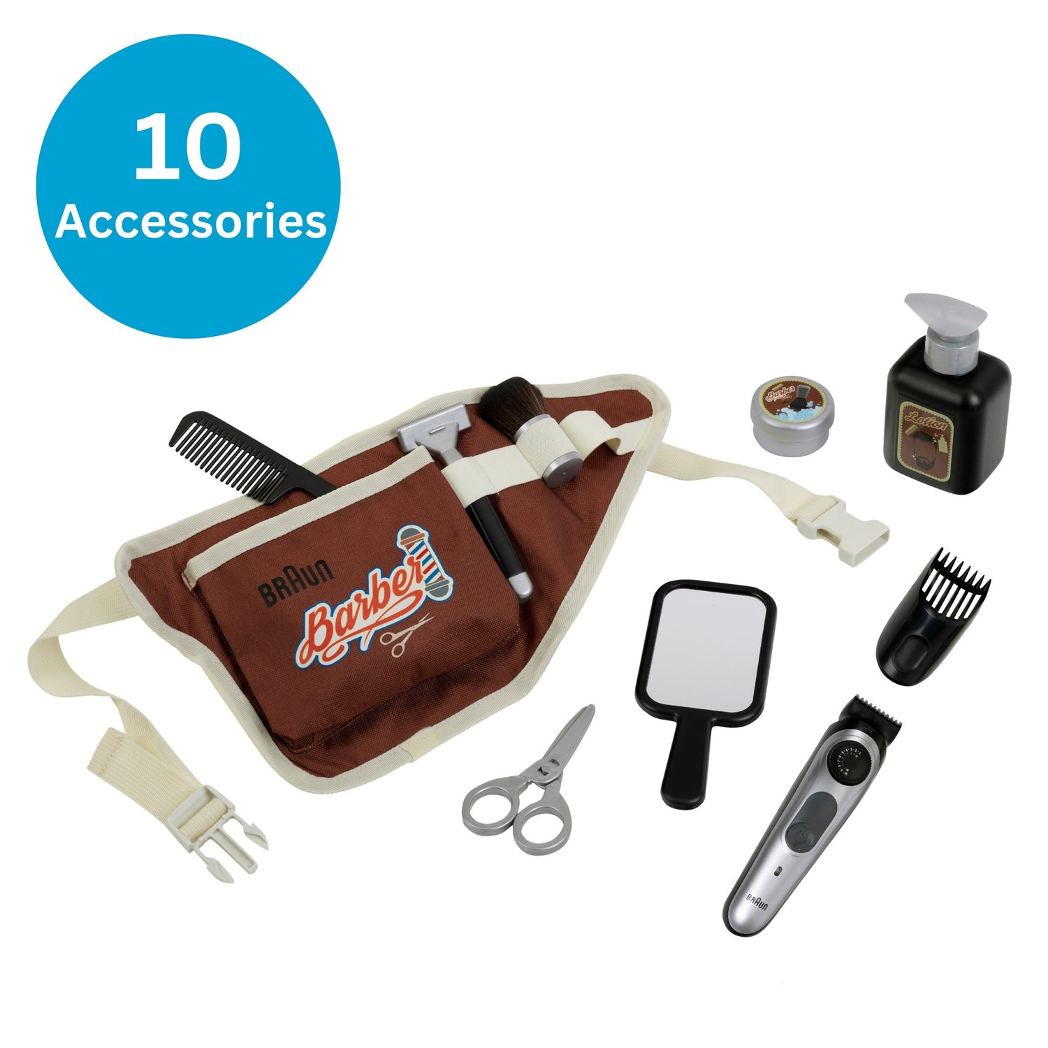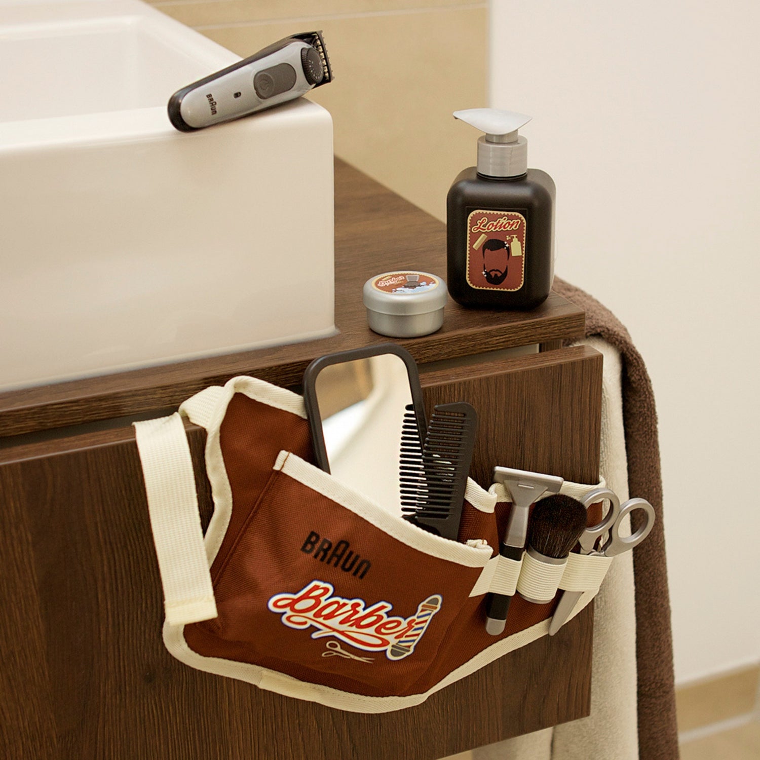 Die Barber Gürteltasche von Theo Klein enthält Kamm, Spiegel, Schere, Rasierpinsel und Nassrasierer - natürlich allesamt kindgerecht mit abgerundeten Ecken und Kanten.