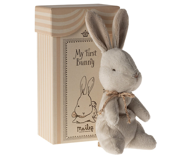 Ein treuer Begleiter von Anfang an, „Mein erster Hase“ von Maileg ist speziell für kleine Hände gemacht und lädt vom ersten Moment an zum Kuscheln ein. Gefertigt aus besonders weichem Plüsch, vermittelt er Geborgenheit und wird schnell zu einem vertrauten Begleiter, beim Einschlafen, Trösten oder auf kleinen Entdeckungstouren. Ein farbiges Band um den Hals verleiht dem Hasen eine liebevolle Note. Verpackt ist er in einer schönen Geschenkbox, in der sich persönliche Geburtsinformationen eintragen lassen – ideal als besonderes Geschenk zur Geburt oder Taufe. Wie bei Maileg üblich, verbindet auch dieses Stofftier zeitloses Design mit hoher Qualität und viel Feingefühl. Modell:16-4996-00 Material: Polyester Nettogewicht: 0,15 kg Empfohlenes Spielalter: ab Geburt (All Ages) Füllung: Recyceltes Polyester / PE-Granulat Pflegehinweis: Maschinenwäsche bei 30 °C Maße: Höhe 19 cm | Breite 10 cm | Tiefe 7 cm Entspricht der Spielzeugrichtlinie 2009/48/EG sowie den harmonisierten Normen EN 71 Warnhinweis: Bitte vor dem ersten Gebrauch alle Verpackungsmaterialien entfernen.