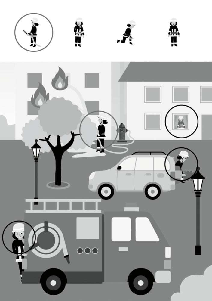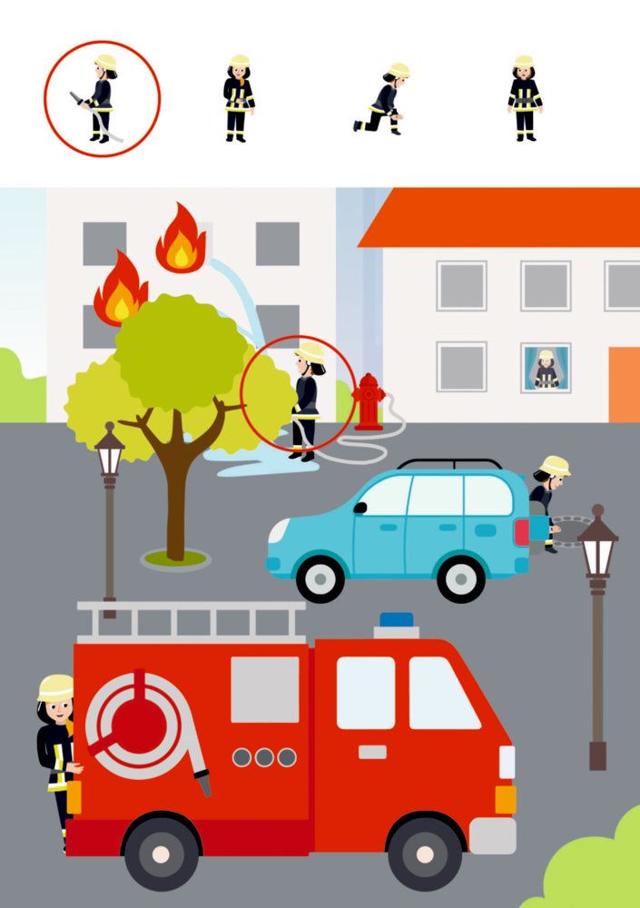 Dieser bunte Feuerwehr- und Polizei-Rätselblock bietet 40 einfache und lustige Rätselaufgaben, mit denen Kindergartenkinder spielerisch und selbstständig genaues Hinschauen und logisches Denken üben. Die überschaubaren Aufgaben und die klare Gestaltung spornen das Kind an und sorgen für Erfolgserlebnisse.