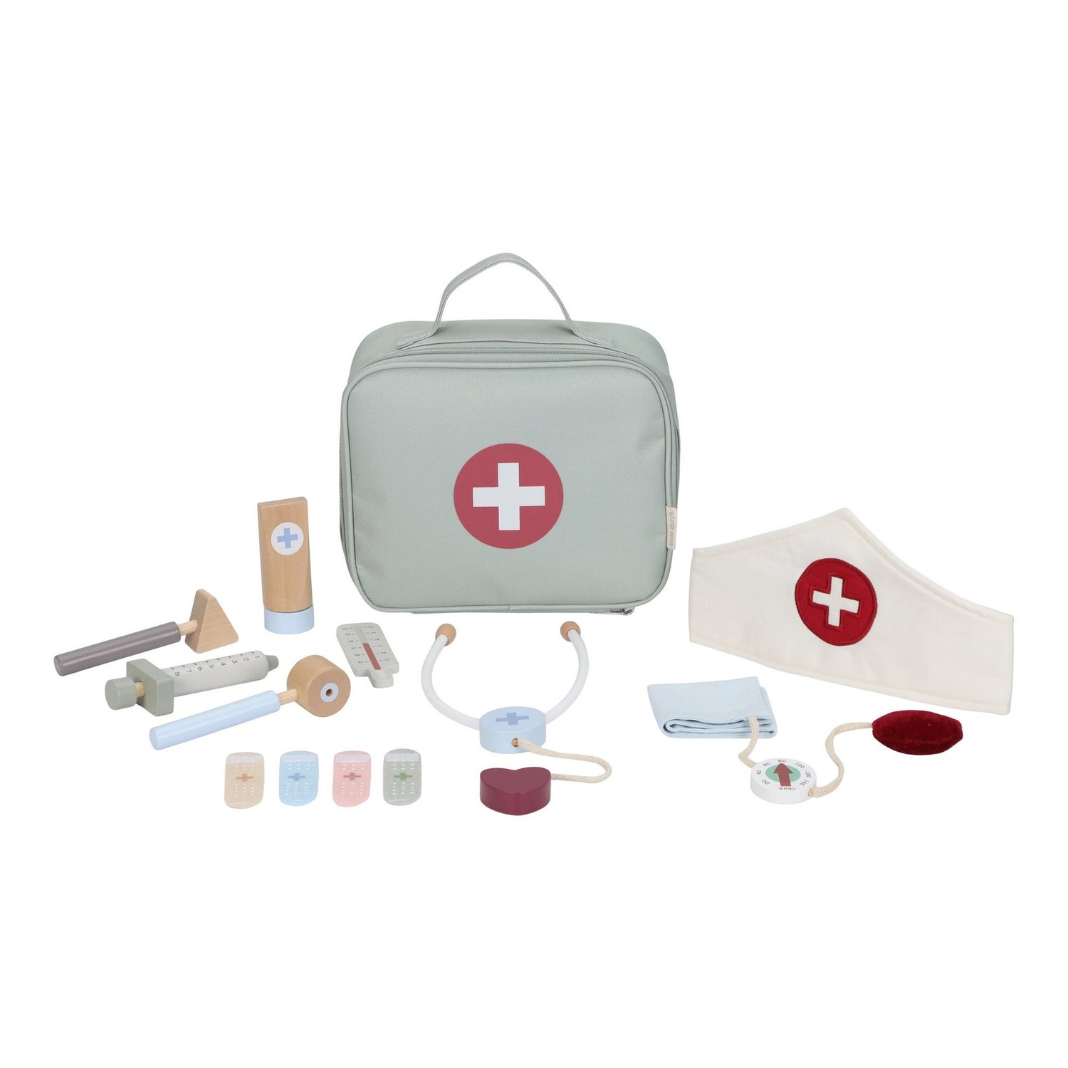 „Der nächste Patient bitte!“ – mit diesem liebevoll gestalteten Arztset von Little Dutch, aus Holz beginnt das Rollenspiel voller Fürsorge und Fantasie. In der hochwertigen Stofftasche steckt alles, was kleine Ärztinnen und Ärzte für eine gute Behandlung brauchen: Thermometer, Spritze, Pflaster, Stethoskop, Blutdruckmessgerät – sogar eine passende Doktorhaube ist dabei.